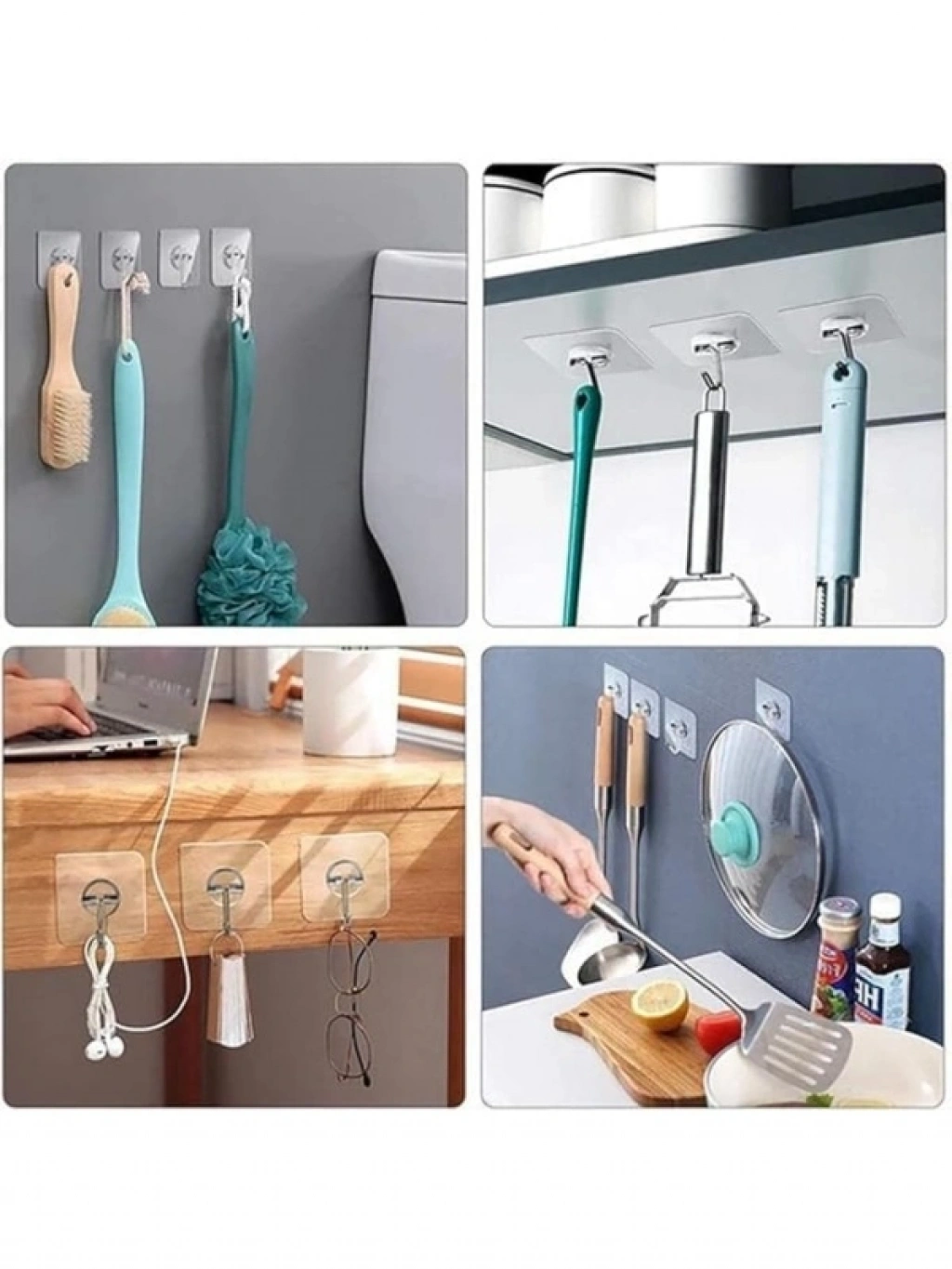 Çok amaçlı kullanım için tasarlanmış olan bu şeffaf askı seti, ev dekorasyonunuza zarif bir dokunuş katarken görünmez özelliği ile dikkat çeker. Banyo, mutfak ve diğer alanlarda kullanılmak üzere idealdir. Yüzeyin temiz ve kuru olduğundan emin olduktan sonra yapıştırarak kullanabilirsiniz. Paket içeriğinde 5 adet yapışkanlı askı bulunur; bu sayede çeşitli eşyalarınızı düzenleyebilir, kolayca asabilirsiniz. Kullanım sonrası 12 saat bekleyerek sağlamlığını artırabilirsiniz.