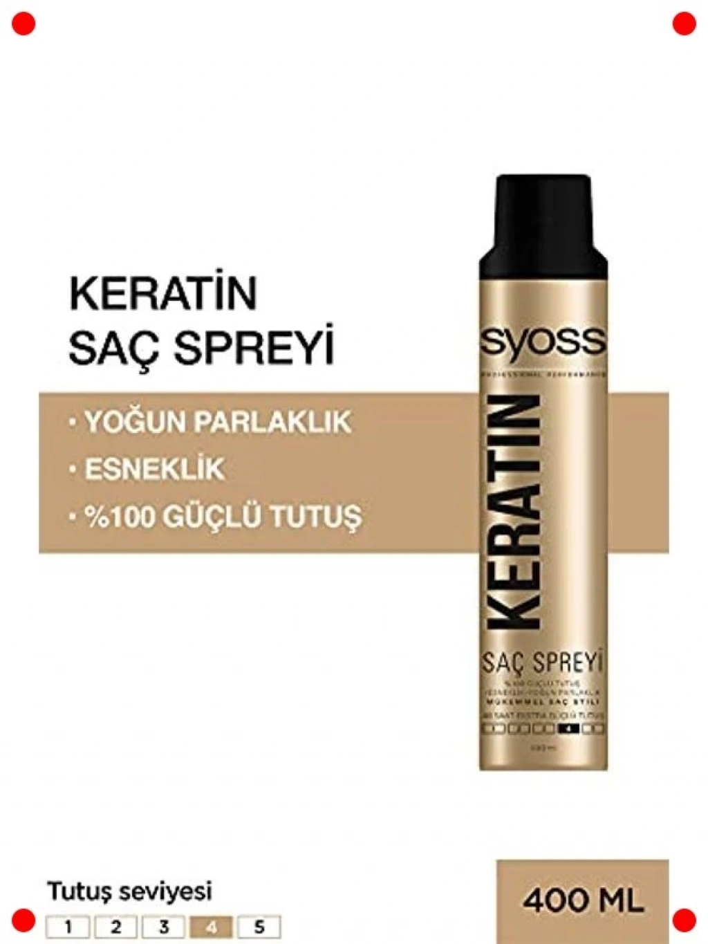 Saçlarınıza yoğun bir keratin bakımı ve uzun süreli şekillendirme sağlayan bu sprey ile saçlarınız daha güçlü ve parlak görünsün. Özel keratin formülü, saç tellerinin derinlerine nüfuz ederek yıpranmış bölgeleri onarır ve saça doğal bir koruma kalkanı oluşturur. Isıya karşı koruma özelliği sayesinde fön, düzleştirme veya maşa gibi işlemlerden kaynaklanabilecek hasarı minimize eder. Saçların elektriklenmesini engelleyerek daha pürüzsüz ve kolay taranır olmasını sağlar. Saçlarınızı ağırlaştırmadan şekillendirmenize yardımcı olur ve gün boyu kalıcı bir tutuş sunar. 400 ml'lik büyük boyutuyla uzun süreli kullanım için idealdir. Canlı, güçlü ve kolay şekillenebilen saçlara kavuşmak isteyenler için mükemmel bir seçimdir.
