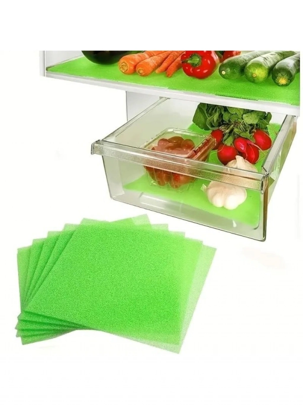 Bu çevre dostu malzemeden üretilmiş buzdolabı sebzelik çekmece seti, kesilebilir ve yıkanabilir yapısıyla kullanımı son derece pratiktir. Nem kontrolü sağlayan özel dokulu yüzeyi, sebze ve meyvelerin tazeliğini korur. Her türlü buzdolabı çekmecesine uyum sağlamak için istenilen boyutta kesilebilir. Uzun ömürlü kullanımı sayesinde, çürümeleri geciktirir ve raf ömrünü uzatır.