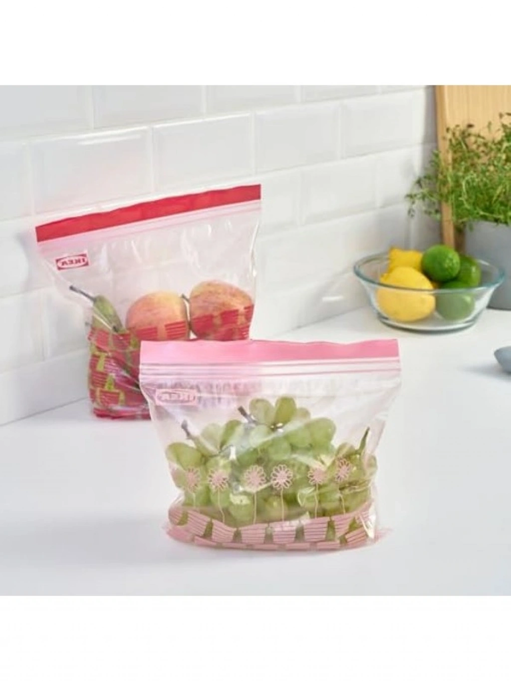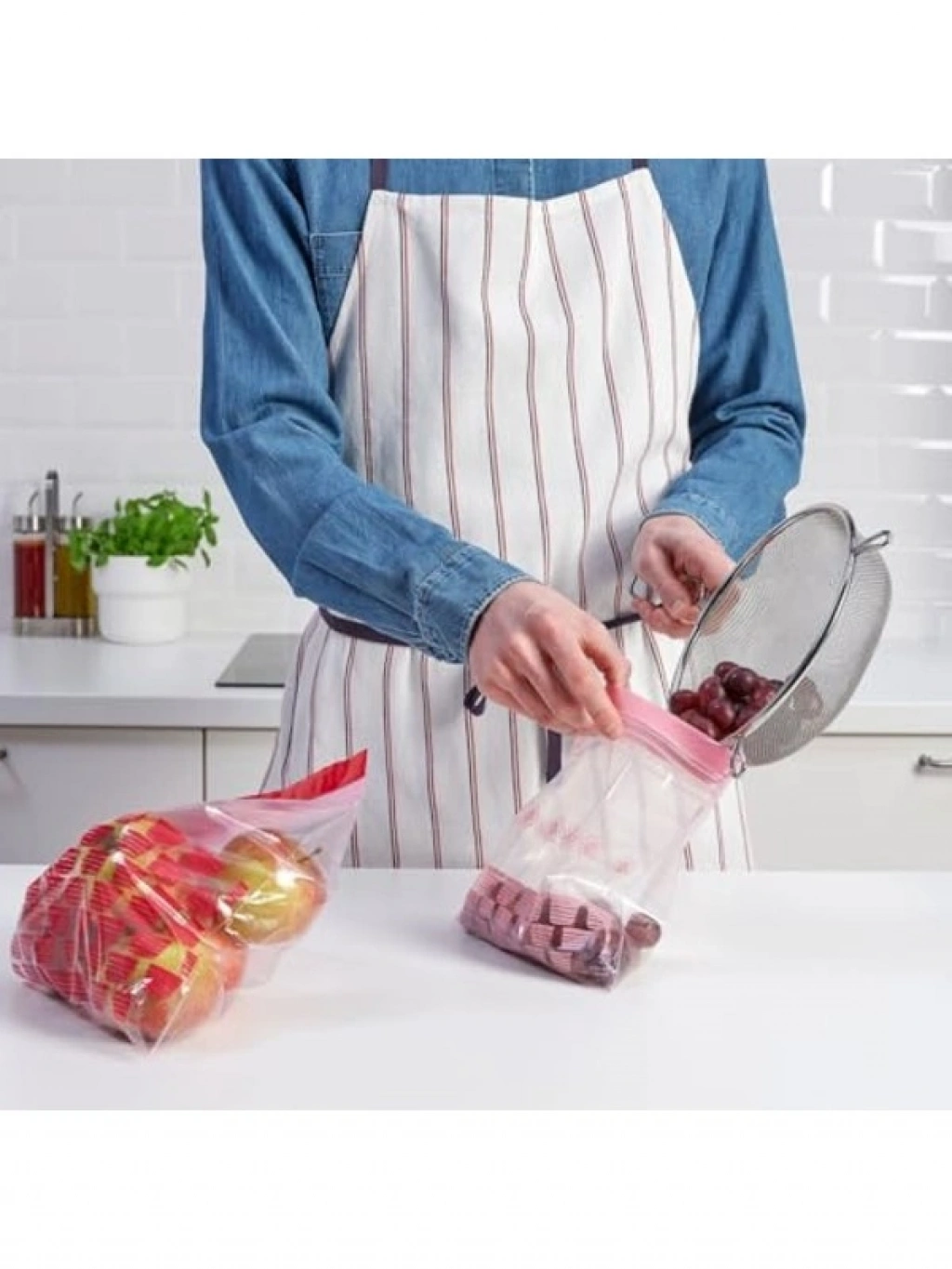 Kilitlenebilir buzdolabı poşeti setinde 50 adet kırmızı-pembe poşet bulunmaktadır. Bu poşetler, 2,5 lt ve 1,2 lt hacimleri ile farklı boyutlardaki gıda ürünlerini saklamak için idealdir. Kilitlenebilir tasarımı, içeriklerin tazeliğini korur.