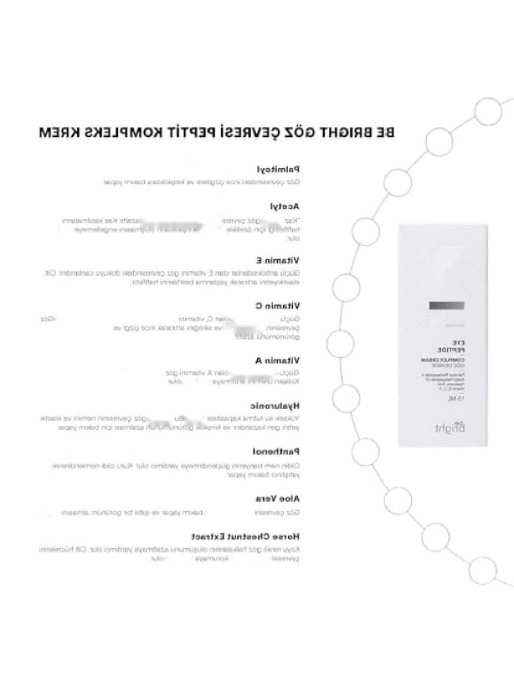 Yüksek kaliteli nemlendirici formülü ile göz çevresindeki ince çizgileri azaltmaya yardımcı olan krem, cildinizi besler ve sıkılaştırır. Kırışıklık karşıtı etkisi ile genç bir görünüm kazandırır. Ürün ambalajı görseldekinden farklılık gösterebilir.