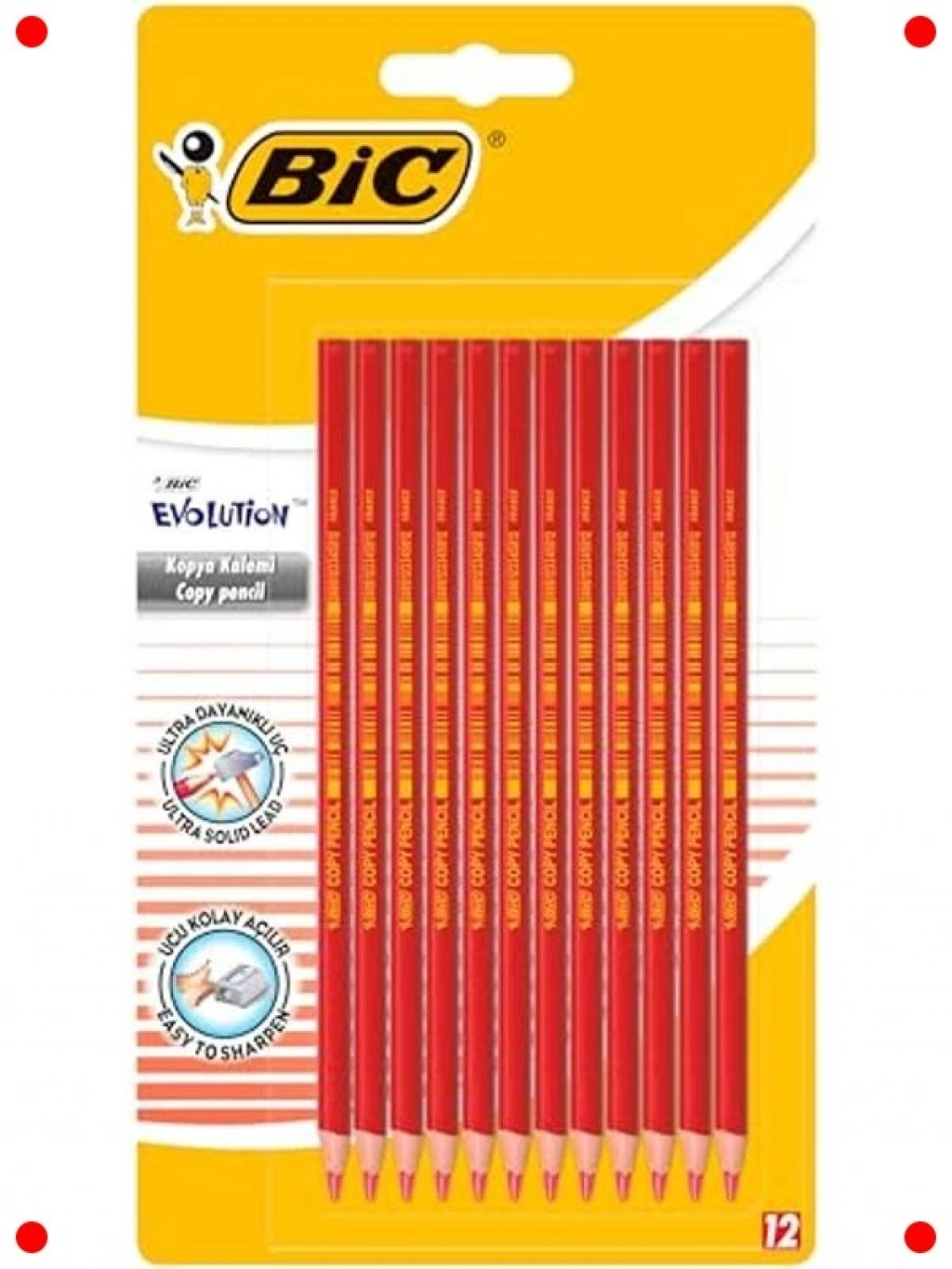Çocuklar ve öğrenciler için özel olarak tasarlanmış bu 12'li kırmızı kopya kalemi setiyle tanışın. Kıymık oluşturmayan özel yapısı, çocukların güvenliğini ön planda tutar. Çiğnemeye karşı dayanıklı gövdesi sayesinde uzun ömürlü kullanım sunar. Kolay açılır yapısı, kalemtıraş kullanımını pratik hale getirir. Canlı kırmızı rengi, çizimlerde ve notlarda belirgin bir fark yaratır. Okulda, evde veya sanat projelerinde güvenle kullanılabilecek, çocuk dostu ve dayanıklı bir üründür.
