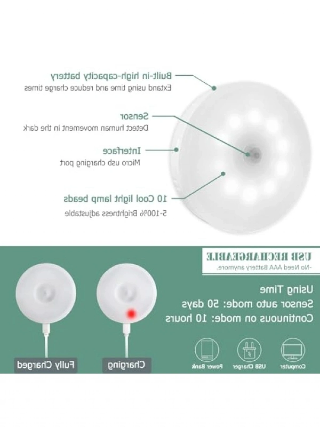 Hareket sensörlü gece lambası, iç mekan kullanımına uygun tasarımıyla karanlık ortamlarda güvenliği artırır. 10 LED ışık ile donatılmış olan bu lamba, otomatik olarak hareket algılayarak devreye girer ve 25 saniye sonra kapanır. USB şarj edilebilir özelliği sayesinde, tam şarj ile günlük kullanımda yaklaşık 50 gün dayanır. Kısılabilir ışık seviyesi ile ihtiyacınıza göre ayarlama yapabilirsiniz. Kolay montaj imkanı ile istediğiniz yere yerleştirilebilir.