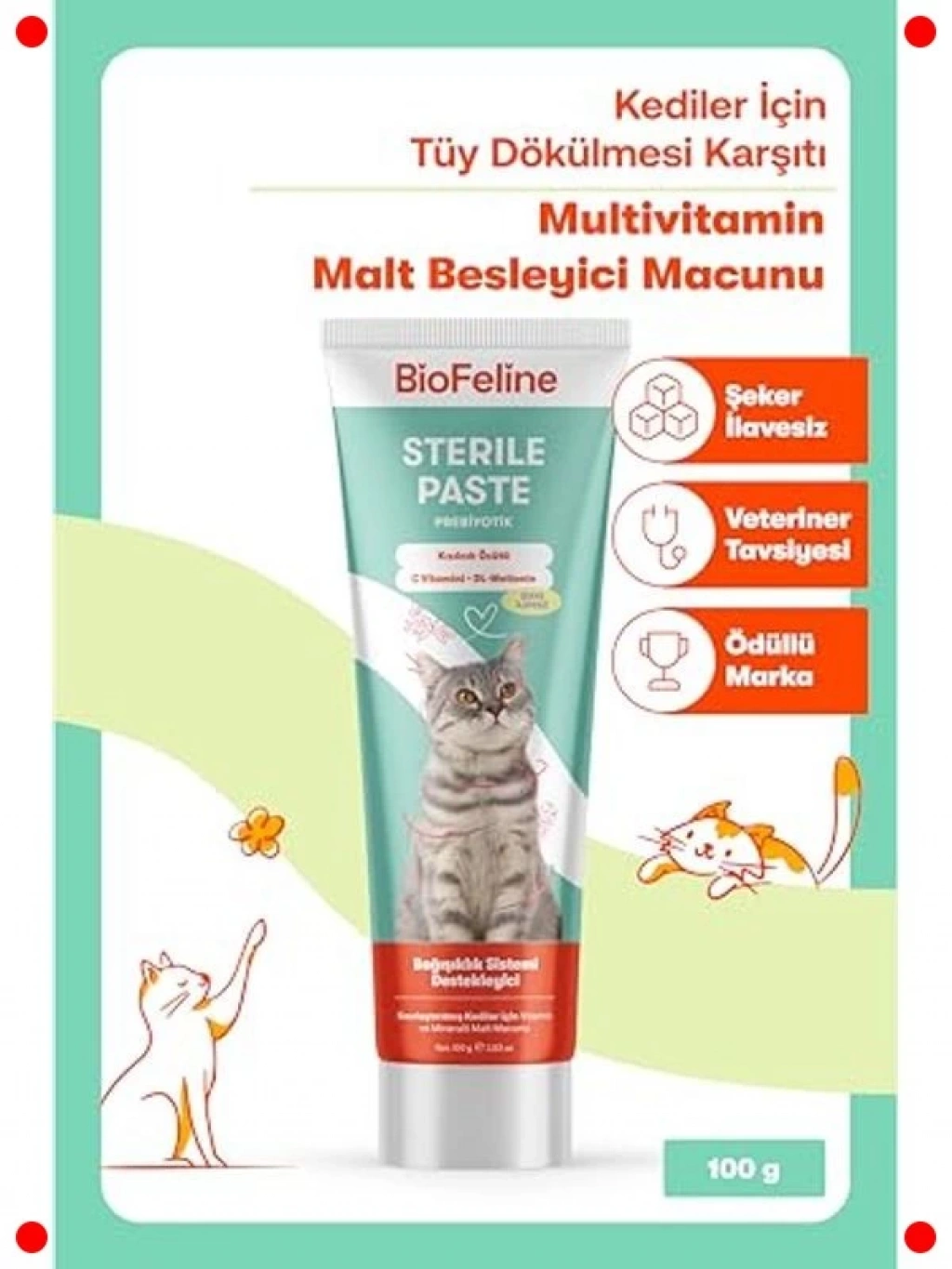 Kısırlaştırılmış kedinizin genel sağlığını ve bağışıklık sistemini desteklemek için özel olarak formüle edilmiş bu multivitaminli malt macun ile ona eksiksiz bir bakım sunun. Kısırlaştırma sonrası kedilerde görülebilen vitamin ve mineral eksikliklerini giderir, enerjisini ve canlılığını artırır. Aynı zamanda sindirim sistemini destekler ve tüy yumağı oluşumunu azaltmaya yardımcı olur. Lezzetli formülü sayesinde kedinizin severek tüketeceği bu macun, günlük takviyelerini kolayca almasını sağlar. Bağışıklık sistemini güçlendirerek hastalıklara karşı direncini artırır ve kedinizin uzun ömürlü ve sağlıklı bir yaşam sürmesine katkıda bulunur. 100 gramlık pratik ambalajıyla kullanım kolaylığı sunar.