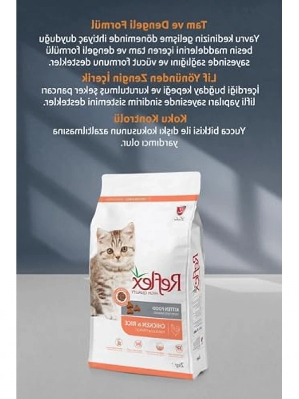 Kıtten Chicken & Rice kedi maması, 10 kilogramlık paketlerde yetişkin kediler için özel formüle edilmiştir. Tavuk tadı ile kedilerin damak zevkine hitap eden bu mama, besleyici içeriği ile sağlıklı bir beslenme sunar.
