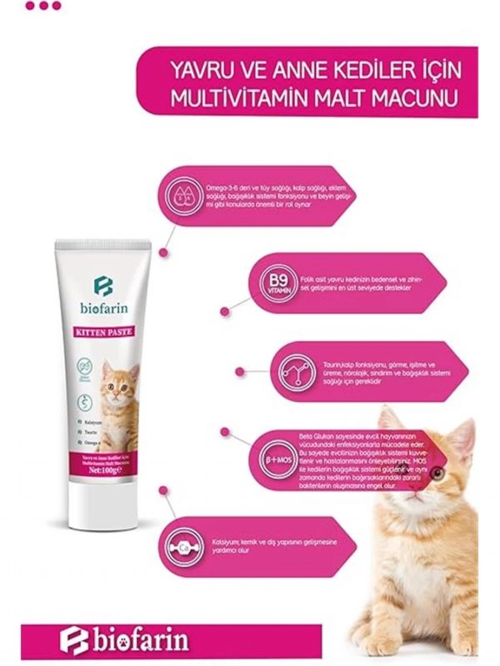 Kitten Paste 100 Gr Yavru Ve Anne Kedi Bağışıklık Kas Gelişimi Destekleyici Multivitamin