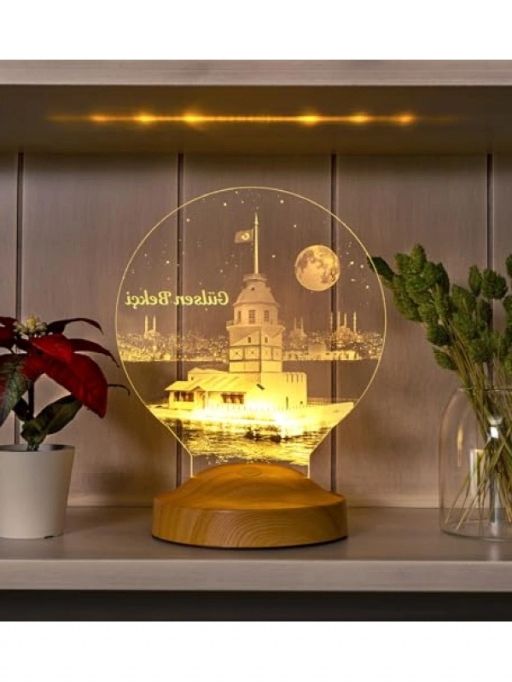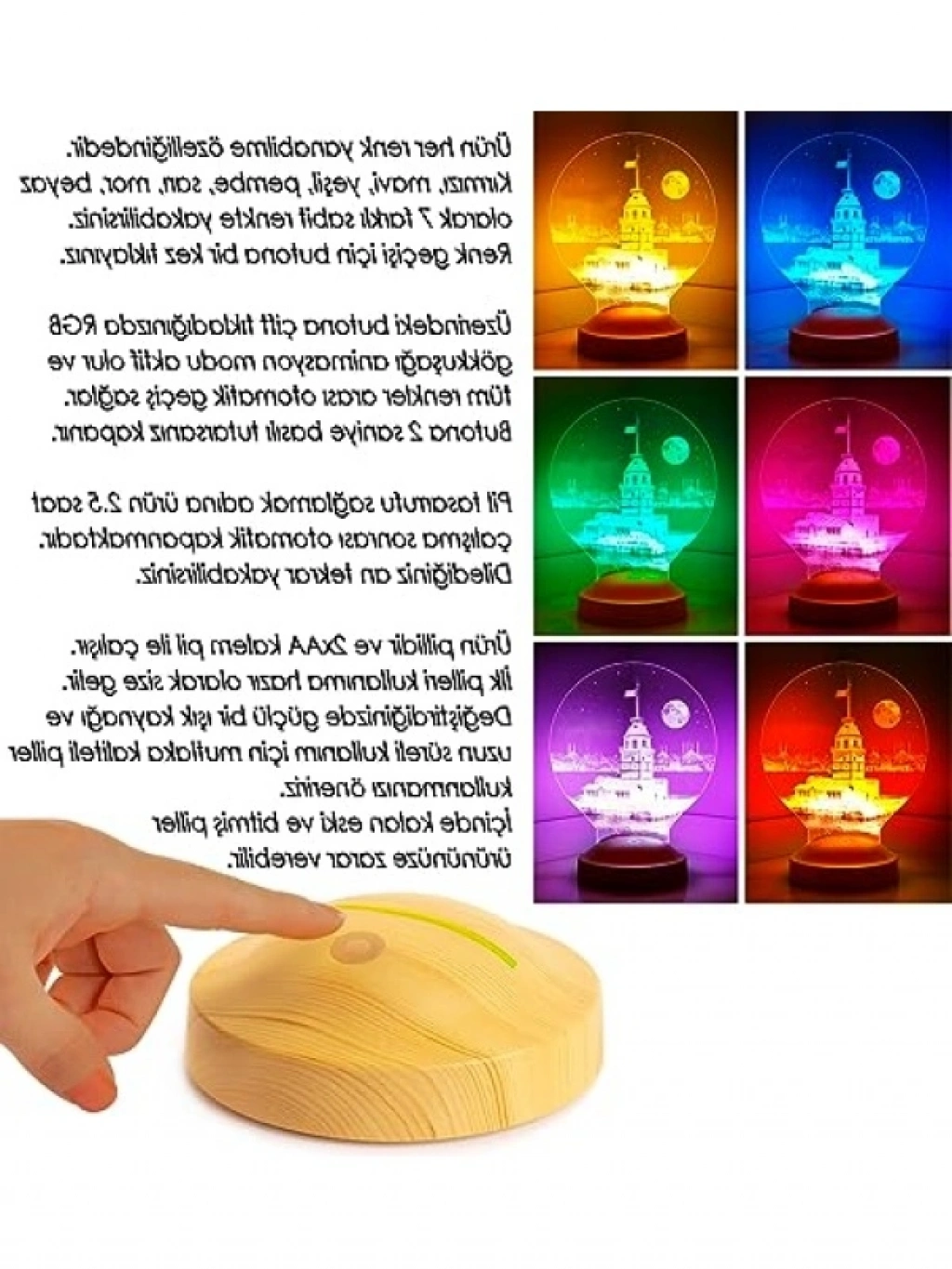Kız Kulesi tasarımıyla dikkat çeken bu LED lamba, kişiselleştirilebilir yazı seçeneği ile özel bir hediye alternatifi sunar. 7 farklı renkte ışık yayabilen ürün, renk geçişi animasyonu ile görsel bir şölen yaratır. Pilli yapısı sayesinde kablo gerektirmeden kullanılabilir ve 3 saat otomatik yanma süresi ile pil tasarrufu sağlar.