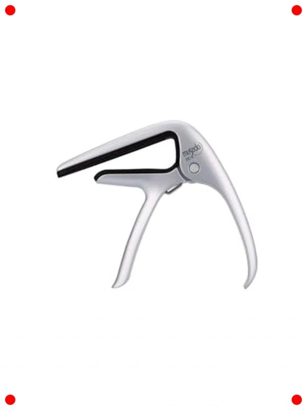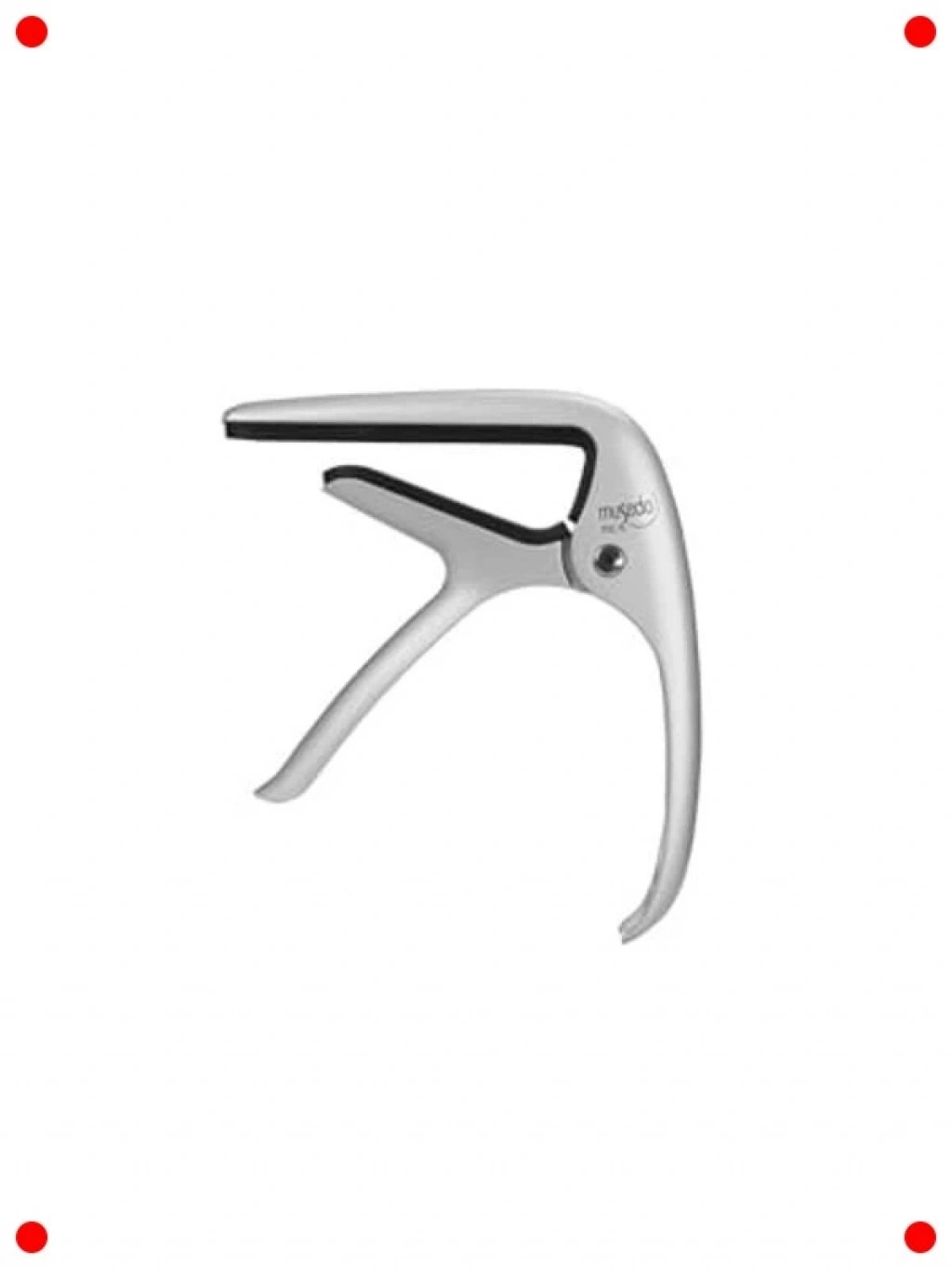 Klasik gitarınızda tonları kolayca değiştirmek için tasarlanmış bu zarif gümüş renkli kapo ile müzikal yeteneklerinizi genişletin. Sağlam metal alaşımdan üretilmiş olup, uzun ömürlü kullanım ve güvenilir performans sunar. Ergonomik tasarımı sayesinde tek elle hızlıca takılıp çıkarılabilir, böylece şarkı geçişlerinde veya farklı tonlarda çalarken zamandan tasarruf edersiniz. Yüksek hassasiyetli yay mekanizması, tellere dengeli bir baskı uygulayarak net ve akortlu bir tonlama sağlar, aynı zamanda gitarınızın sapına zarar vermez. Hem yeni başlayanlar hem de deneyimli müzisyenler için olmazsa olmaz bir aksesuardır.