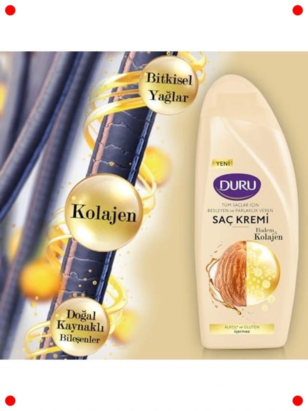 Saçlarınıza derinlemesine nem ve bakım sunan bu kolajen ve badem özlü saç kremi, 500 ml'lik büyük boyutuyla uzun süreli bir saç bakımı sağlar. Kolajenin saç tellerini güçlendirme ve badem özünün besleyici özellikleriyle saçlarınız daha yumuşak, parlak ve kolay taranır hale gelir. Saç kırıklarını önlemeye yardımcı olur ve saç tellerinin direncini artırır. Duş sonrası saçlarınıza uygulandığında anında etki gösterir, düğümleri çözer ve elektriklenmeyi azaltır. Saçlarınızı ağırlaştırmadan ipeksi bir dokunuş kazandırır. Her yıkamada saçlarınızın sağlığını destekler ve onlara doğal bir canlılık verir.