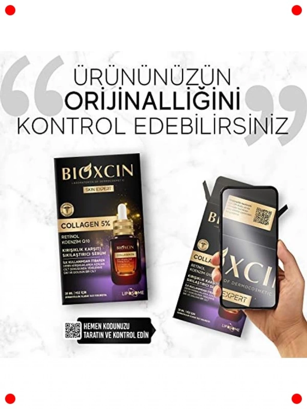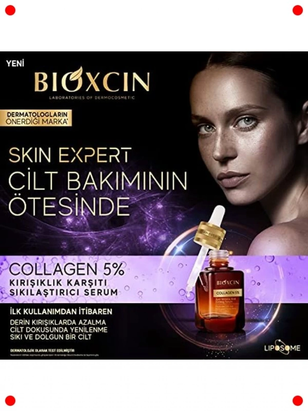 Cildinizin gençlik ışıltısını geri kazanmasına yardımcı olmak için tasarlanmış bu kolajenli yüz serumu, kırışıklıklarla savaşır ve cilt sıkılığını artırır. İçeriğindeki %5 kolajen, retinol, koenzim Q10 ve lipozom teknolojisi sayesinde cildin derin katmanlarına nüfuz ederek hücresel yenilenmeyi destekler. Cildin elastikiyetini artırır, ince çizgilerin ve derin kırışıklıkların görünümünü azaltır. Yoğun nemlendirme sağlayarak cildin daha pürüzsüz, dolgun ve canlı görünmesine yardımcı olur. 30 ml'lik pratik boyutuyla günlük bakım rutininizin vazgeçilmezi olacak.