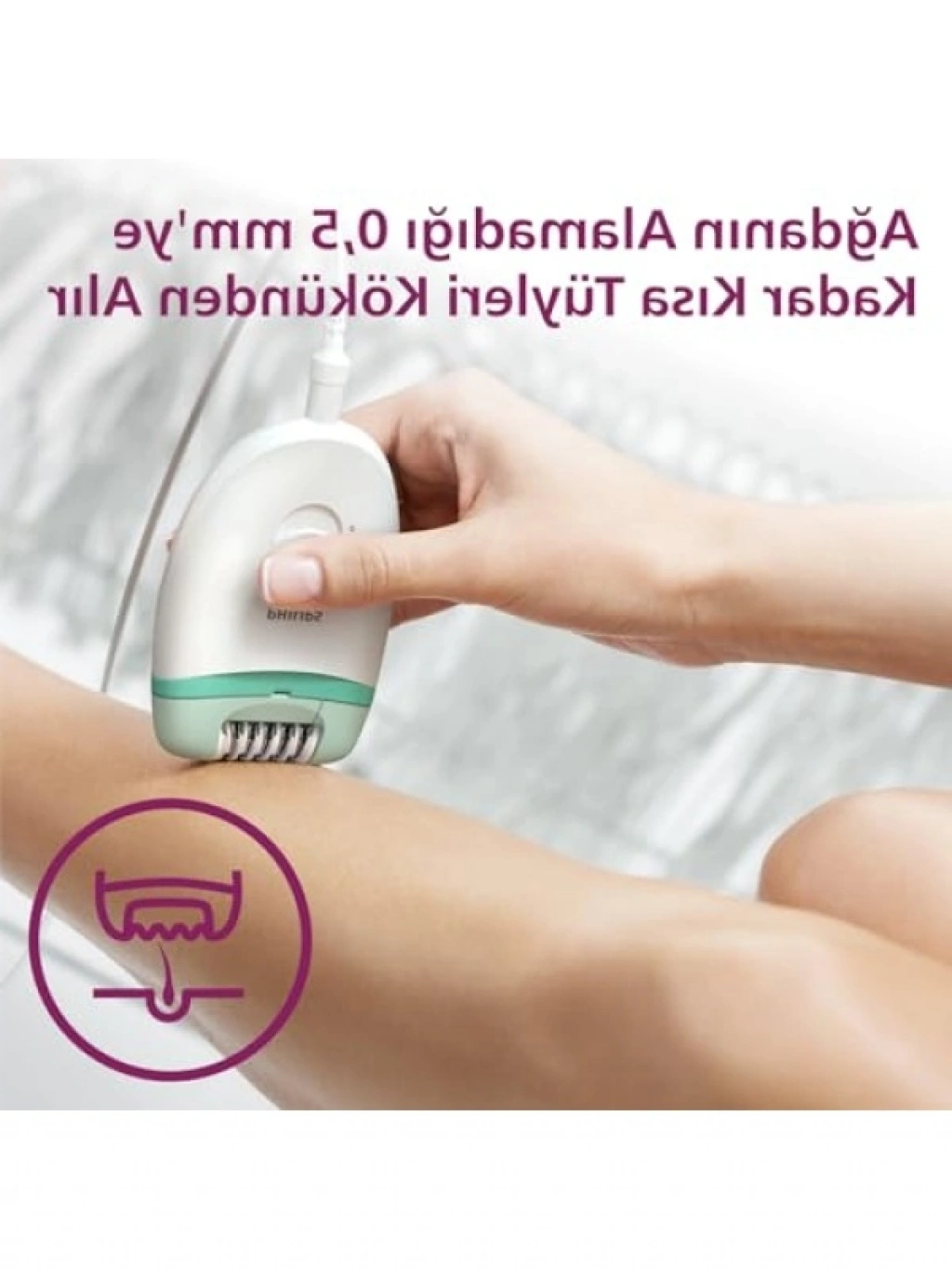 Bu kablolu epilatör, 2 hız ayarı ile kullanıcıya esneklik sunar. Yuvarlak ergonomik tasarımı ve ekstra tutma yeri sayesinde rahat bir kullanım sağlar. Yıkanabilir epilasyon başlığı, hijyenik bir deneyim sunar. Cilt dostu yapısıyla, istenmeyen tüyleri etkili bir şekilde alarak pürüzsüz bir cilt elde etmenize yardımcı olur.