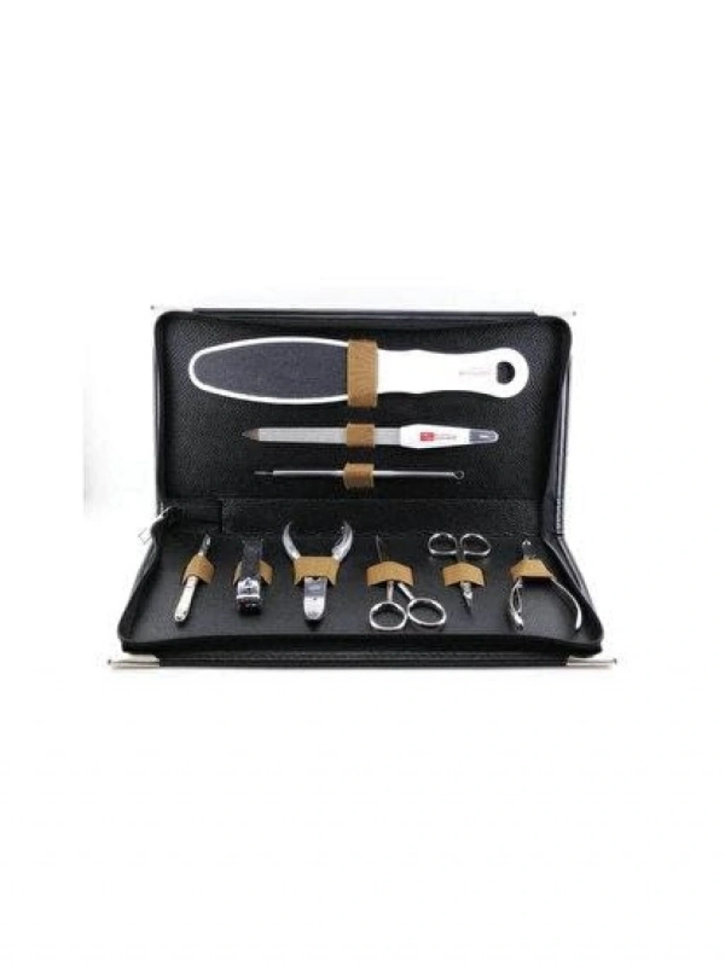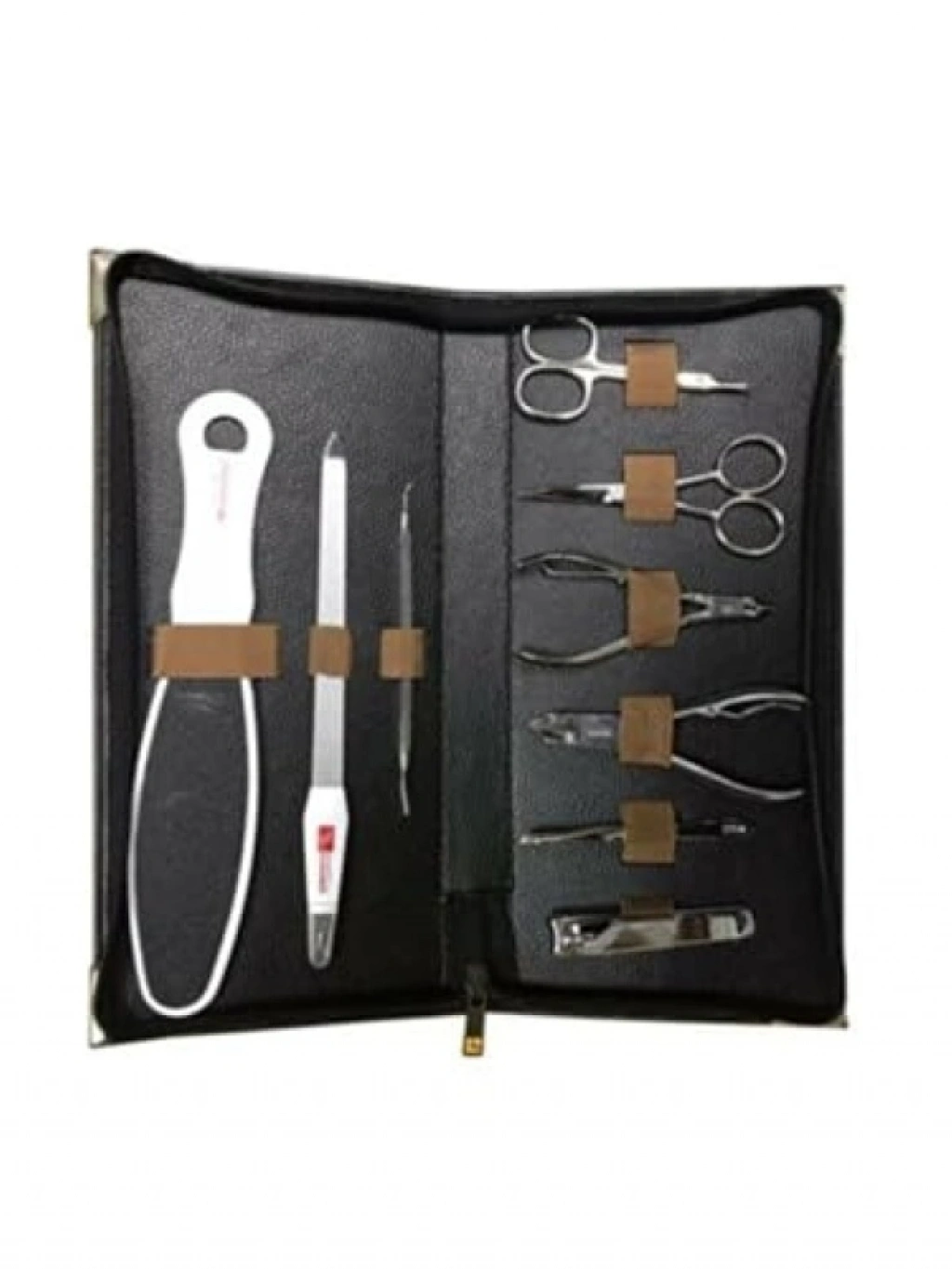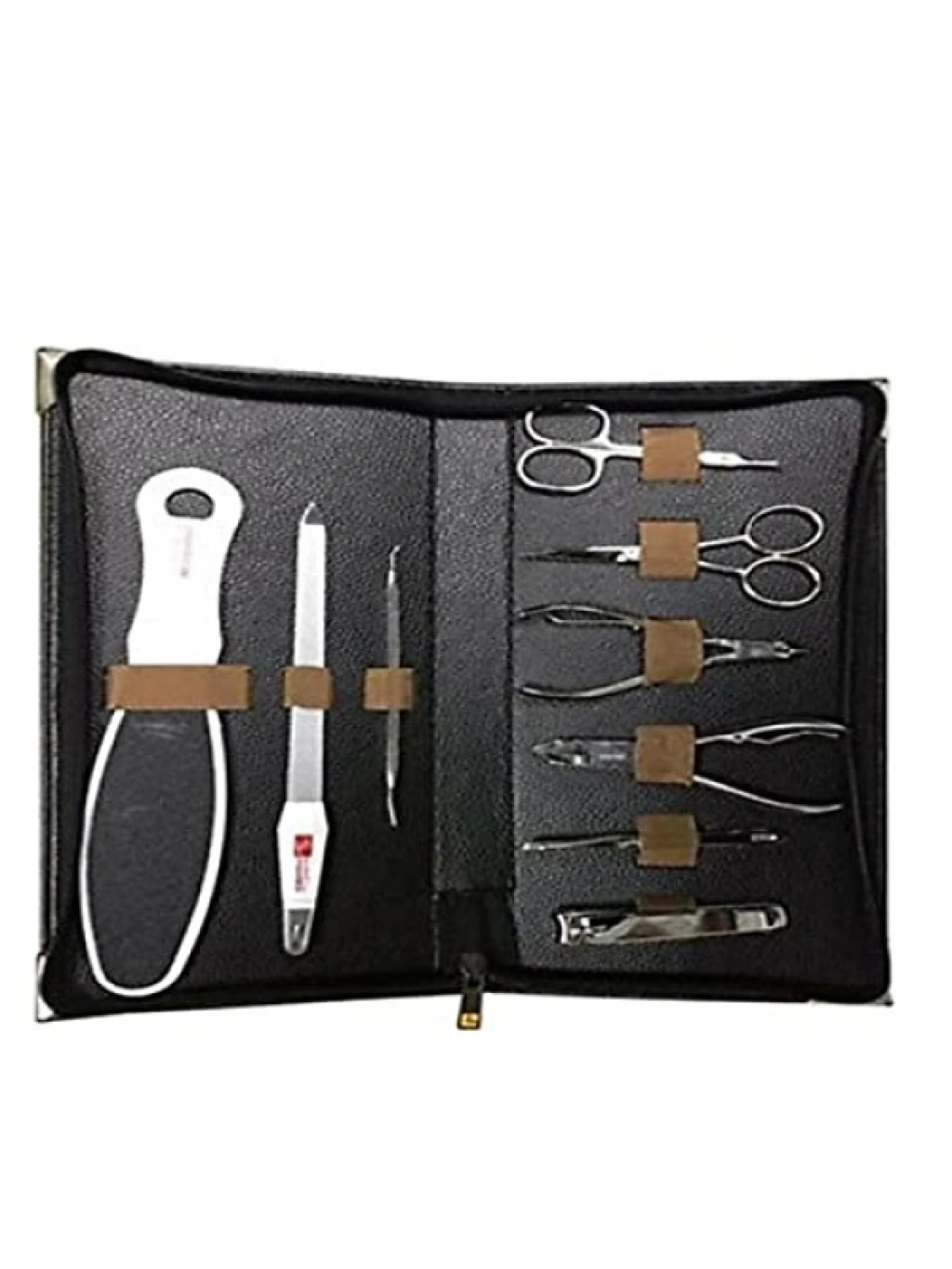 Paslanmaz çelik malzemeden üretilen bu profesyonel manikür-pedikür seti, şık bir suni deri çantada geliyor. Set içerisinde 1 adet ayak törpüsü, et makası, tırnak makası, kaş makası, et pensi, tırnak pensi, siyah nokta çıkarıcı, et sıyırıcı tırnak törpüsü ve cımbız bulunmaktadır. Tüm ihtiyaçlarınızı karşılayacak şekilde tasarlanmış bu set, kişisel bakımınızı kolaylaştıracaktır.