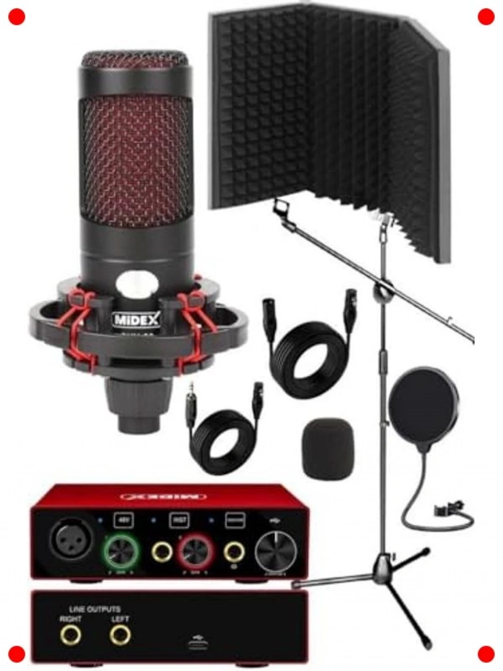 Ev stüdyonuz için ihtiyacınız olan her şeyi sunan bu komple mikrofon ve kayıt seti ile profesyonel kalitede kayıtlar yapın. Yüksek hassasiyetli condenser mikrofon, vokal ve enstrüman kayıtlarınızda kristal netliğinde ses yakalar. Ses kartı, kolay bağlantı ve düşük gecikmeli kayıt imkanı sunar. Birlikte gelen ses yalıtım paneli, istenmeyen yankıları ve dış sesleri azaltarak daha temiz kayıtlar almanızı sağlar. Ayaklı standı ve diğer aksesuarları ile hemen kullanıma hazırdır. Podcast'lerden müzik kayıtlarına kadar tüm projeleriniz için eksiksiz ve güçlü bir çözüm sunar.