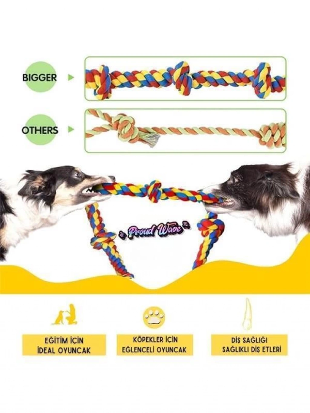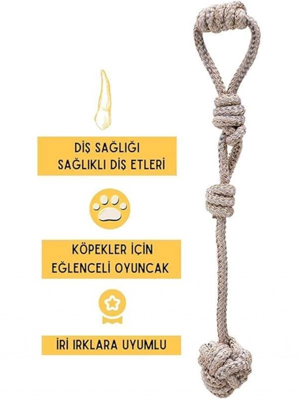 Bu ürün hakkında Paket İçeriği Dörtlü Set Köpek Oyuncağı (Renk Değişkenlik Gösterir) Çekiştirmeli oyuncaklar köpeklerin severek oynadığı ürünlerdir Köpeğinizle birlikte eğlenmeniz için uygun tasarımda bir üründür Halat kısmından tutarak köpeğinizin topu yakalaması için her hareketle teşvik edeceksiniz Standart büyüklükte olan topun dış kaplaması antibakteriyel sağlıklı plastiktir Köpeklerin diş sağlığını korumak için kullanılan örgü oyun ipi veya diş ipi Kaliteli kotondan imal edilmiştir Köpeklerde diş sağlığı köpek sahiplerinin önem vermesi gereken önemli bir konudur Köpeklerin dişleri yedikleri gıdaları tutma ısırma koparma ve öğütme işlevini yerine getirir Bu nedenle diş temizliği ve sağlığı alınan gıdaların hazmının ilk başladığı organdır Ürün Rengi Stok Durumuna Göre gönderilecektir Köpeklerin yalnız oynaması için de uygundur