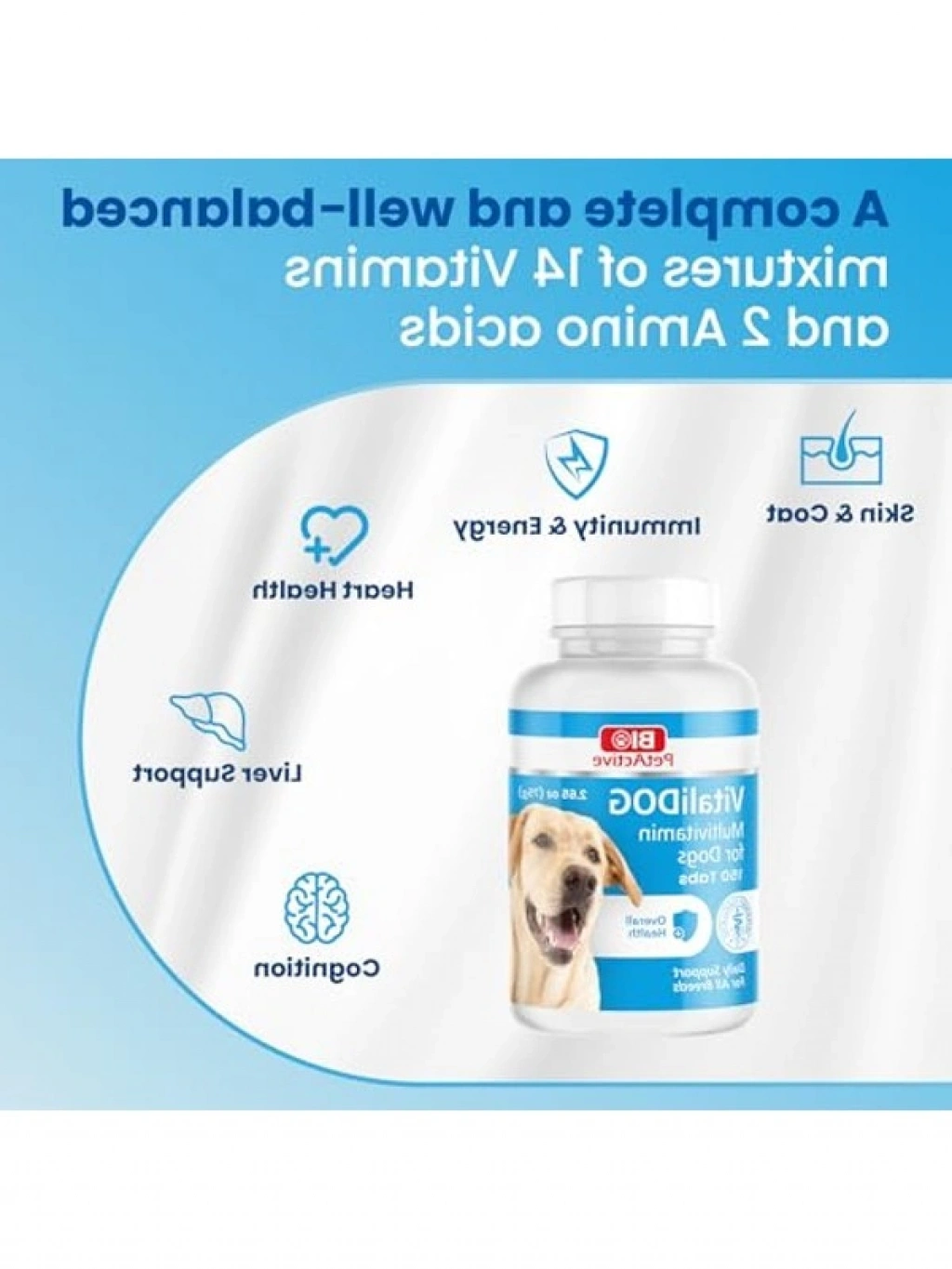 Köpekler için özel olarak üretilmiş 150 tabletlik multivitamin takviyesi, evcil hayvanınızın sağlığını desteklemek için üst kalite malzemelerle hazırlanmıştır. Zarar verecek madde içermez.