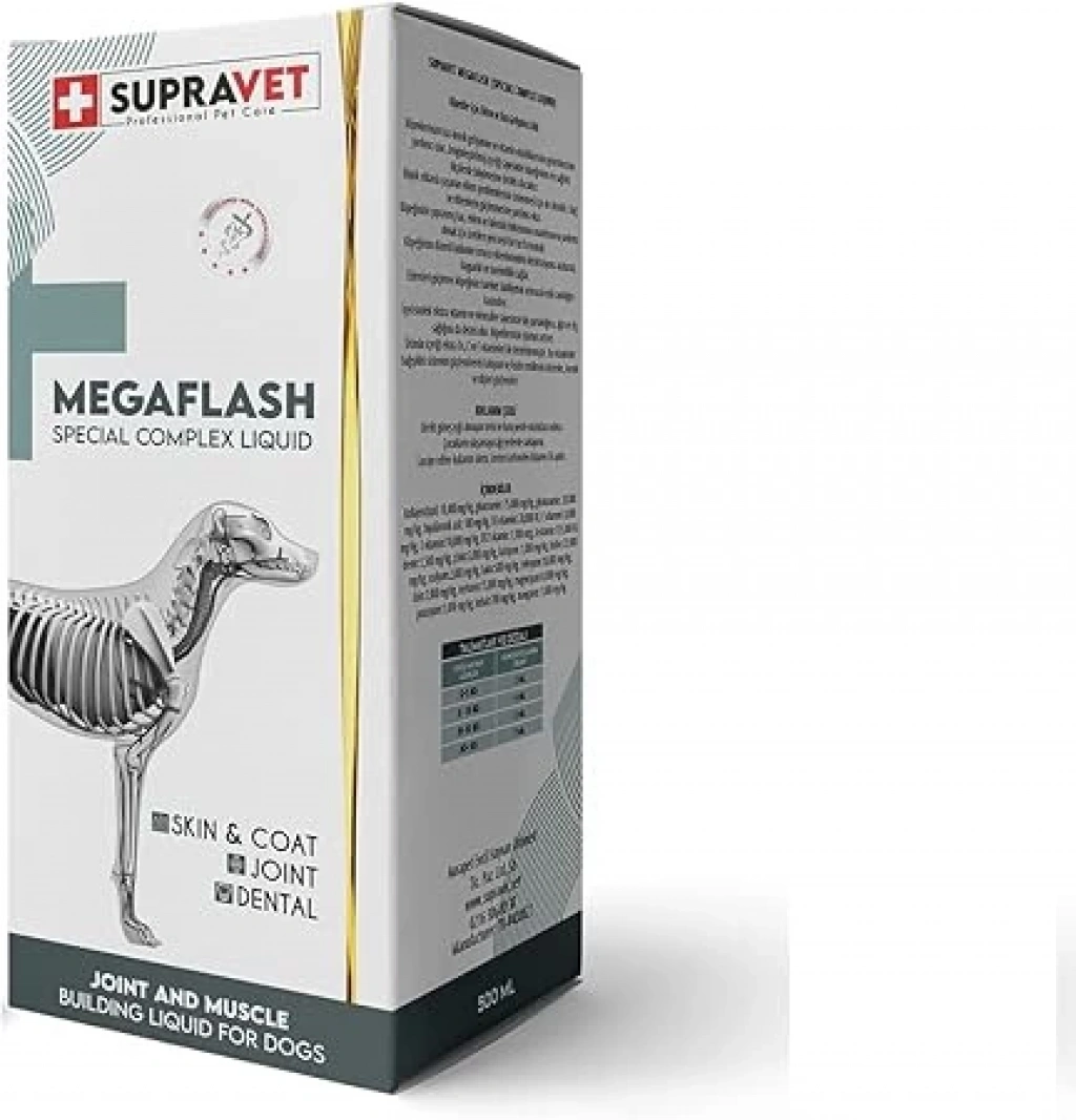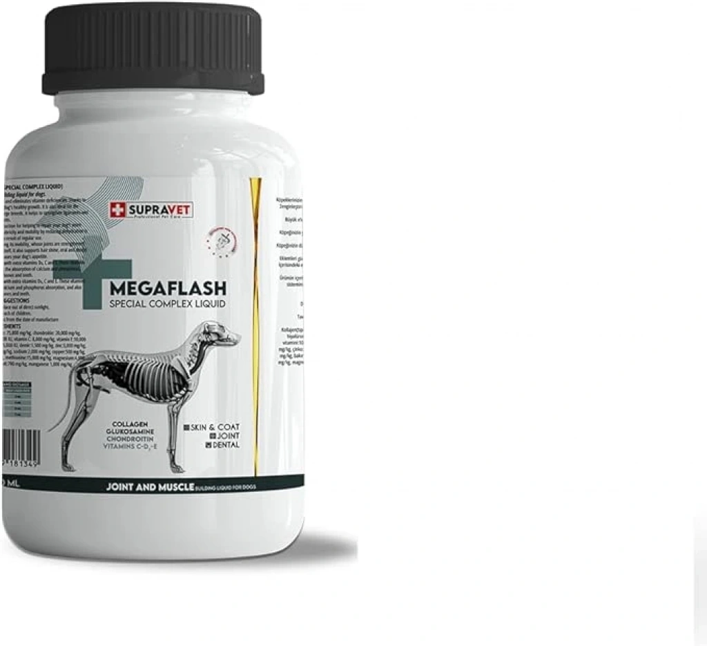 Bu ürün hakkında Köpekler için Eklem ve Kas Geliştirici Likit MEGAFLASH XXL 500 ML (Special Complex Liquid)Köpekler için Eklem ve Kas Geliştirici LikitKöpeklerin kaskemik gelişimine ve vitamin eksikliklerinin giderilmesine yardımcı olur Zenginleştirilmiş içeriği sayesinde köpeğinizin en sağlıklı ölçülerde büyümesine destek olacaktır Büyük ırklarda yaşanan eklem problemlerinin önlenmesi için de idealdir Bağ ve eklemlerin güçlenmesine yardımcı olur Köpeğinizin yıpranmış kas eklem ve kıkırdak dokusunun onarılmasına yardımcı olmak için üretilen yeni nesil bir toz formatıdır