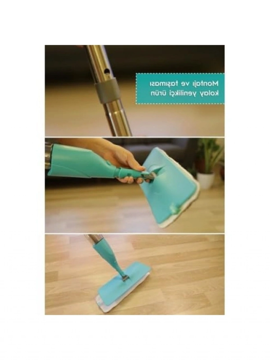 Pratik ve yer kaplamayan bu yenilikçi mop seti, montajı ve taşınması kolay bir temizlik çözümü sunar. 300 ml kapasiteli haznesine su veya deterjan ekleyerek kullanabilirsiniz. 360 derece dönebilme özelliği sayesinde ulaşılması zor alanları rahatlıkla temizler. Mikrofiber mop, parke, fayans ve mermer gibi yüzeylerde çizmeden kullanılabilir. Temizlik sonrası mikrofiber mopu ister elde ister makinede yıkayarak tekrar kullanabilirsiniz.