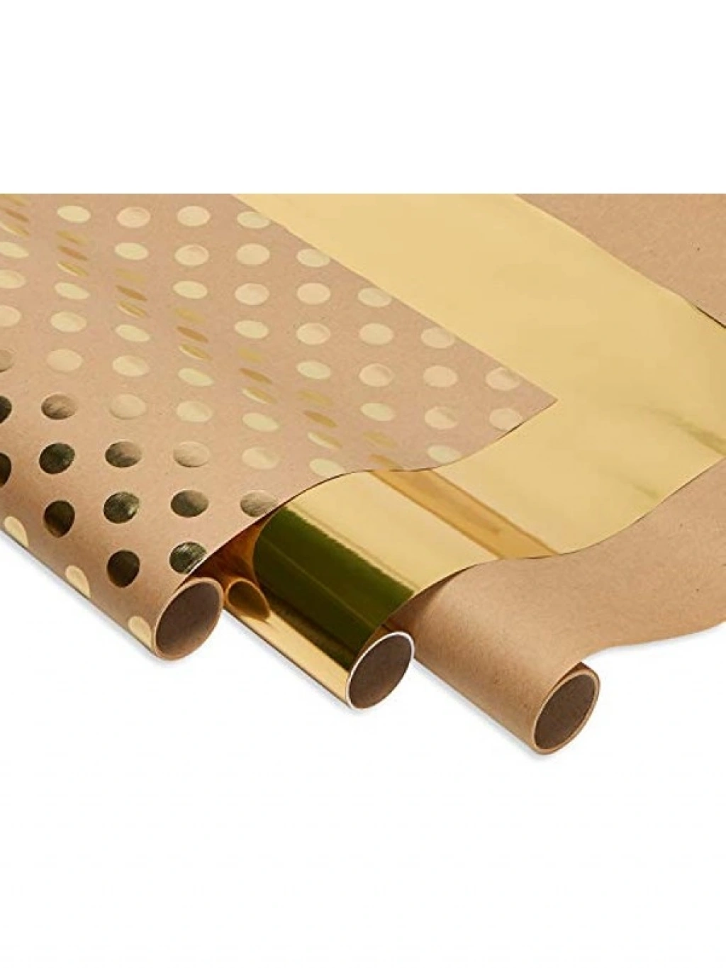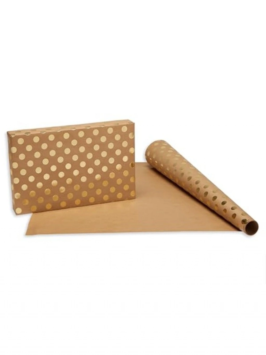 Altın puantiyeli kraft ambalaj kağıdı seti, toplam 3 rulo ile hediye paketleme ihtiyaçlarınızı karşılar. Her rulo 76,2 cm genişliğinde ve 3,0 m uzunluğundadır. Şık tasarımı ile hem özel günlerde hem de günlük kullanımlarda tercih edilebilir.