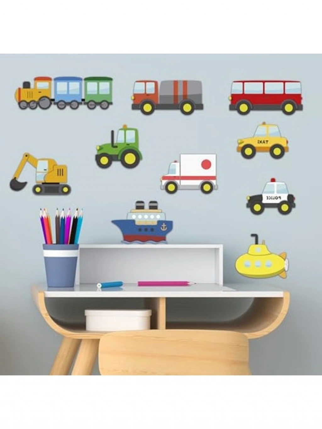 Zengin ve Eğitici Set İçeriği: Tren, kepçe, denizaltı ve ambulans gibi toplam 11 farklı araç figürü ile çocukların araçları tanımasına yardımcı olur. Pratik Soy-Yapıştır Uygulama: Hiçbir ek yapıştırıcı gerektirmeden, arkasındaki koruyucu kağıdı sökerek pürüzsüz yüzeylere anında uygulayabilirsiniz. İz Bırakmadan Kolay Sökülme: Duvar boyasına veya mobilya yüzeyine zarar vermeyen özel yapısı sayesinde dilediğiniz zaman kolayca çıkarılabilir. Canlı Renkler ve Net Baskı: Yüksek çözünürlüklü baskı kalitesi ile uzun süre solmadan canlılığını koruyan dekoratif bir görünüm sunar. Çok Yönlü Kullanım Alanı: Sadece duvarlarda değil; dolap kapakları, camlar ve pürüzsüz her türlü zemin üzerinde dekoratif amaçlı kullanılabilir.