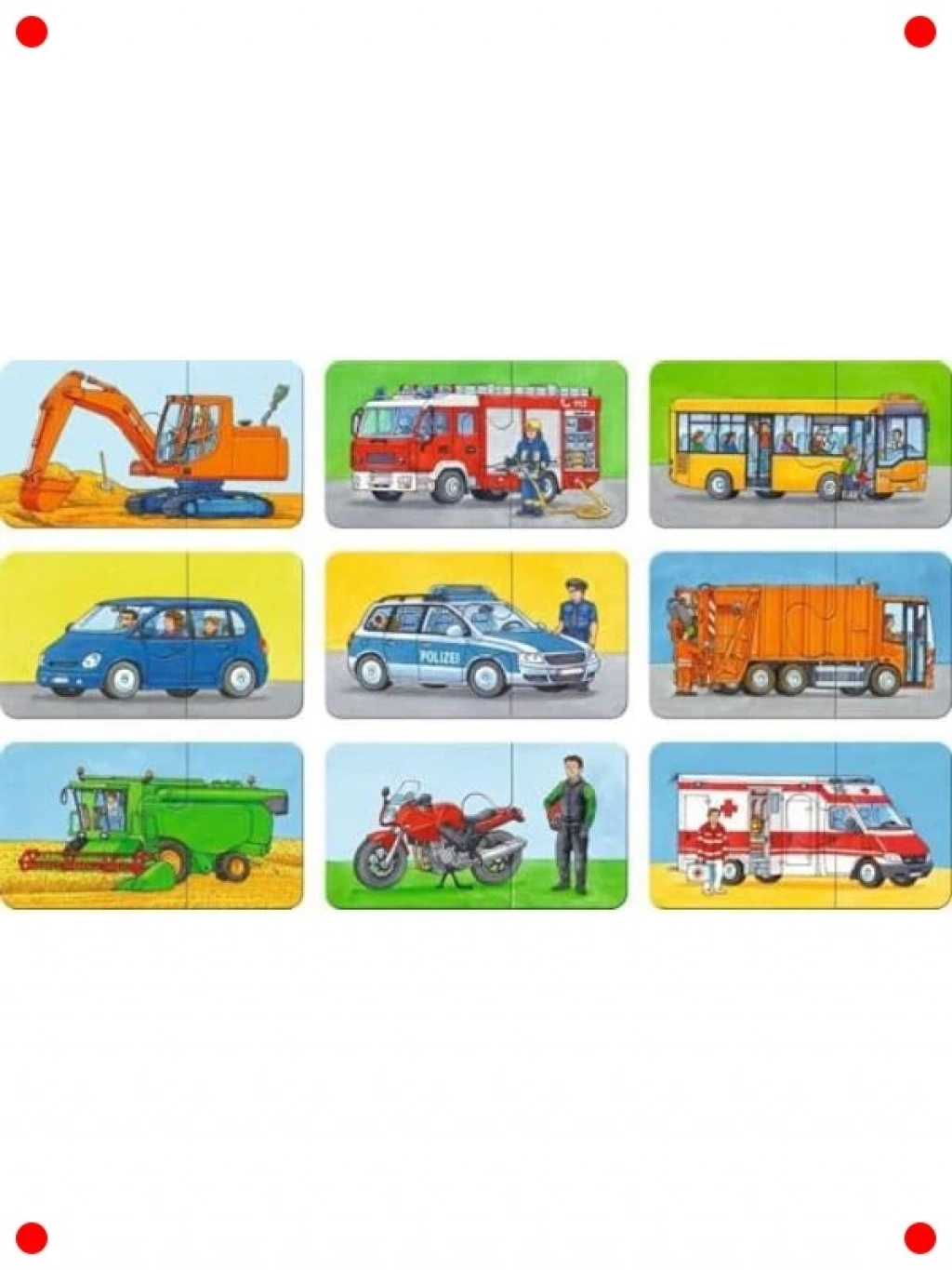 Küçük çocukların öğrenirken eğlenmeleri için özel olarak hazırlanmış bu 9'lu araç yapboz seti, her biri 2 parçadan oluşan farklı araçları barındırır. Renkli ve büyük parçalar, küçük ellerin kolayca kavrayıp birleştirmesini sağlayarak el-göz koordinasyonunu ve motor becerilerini geliştirir. Çocuklar, arabalar, uçaklar, gemiler ve daha birçok farklı aracı tanıma fırsatı bulurken, eşleştirme ve problem çözme yeteneklerini pekiştirirler. Güvenli ve dayanıklı malzemelerden üretilen bu yapbozlar, uzun süreli ve keyifli bir oyun deneyimi sunar. Eğitici ve interaktif yapısıyla çocukların gelişimine katkıda bulunur, erken öğrenme süreçleri için idealdir.