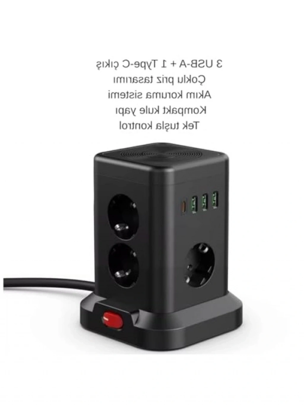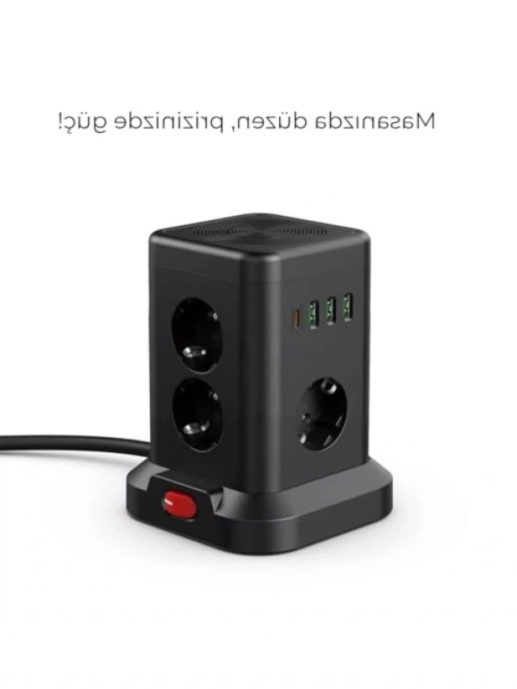 Bu kule tipi çoklu priz, 3 adet USB-A ve 1 adet Type-C çıkışı ile cihazlarınızı hızlı ve güvenli bir şekilde şarj etmenizi sağlar. Akım koruma özelliği sayesinde, cihazlarınızı her an güvende tutar. Tek tuşla kontrol edilebilen bu masaüstü priz, hem şık hem de kullanışlı tasarımıyla ofis ve ev ortamlarında yerini alır. Yüksek kaliteli malzemelerle üretilmiş olup, uzun ömürlü kullanım sunar. Elektronik cihazlarınızı daha düzenli ve güvenli bir şekilde kullanmanızı sağlar.