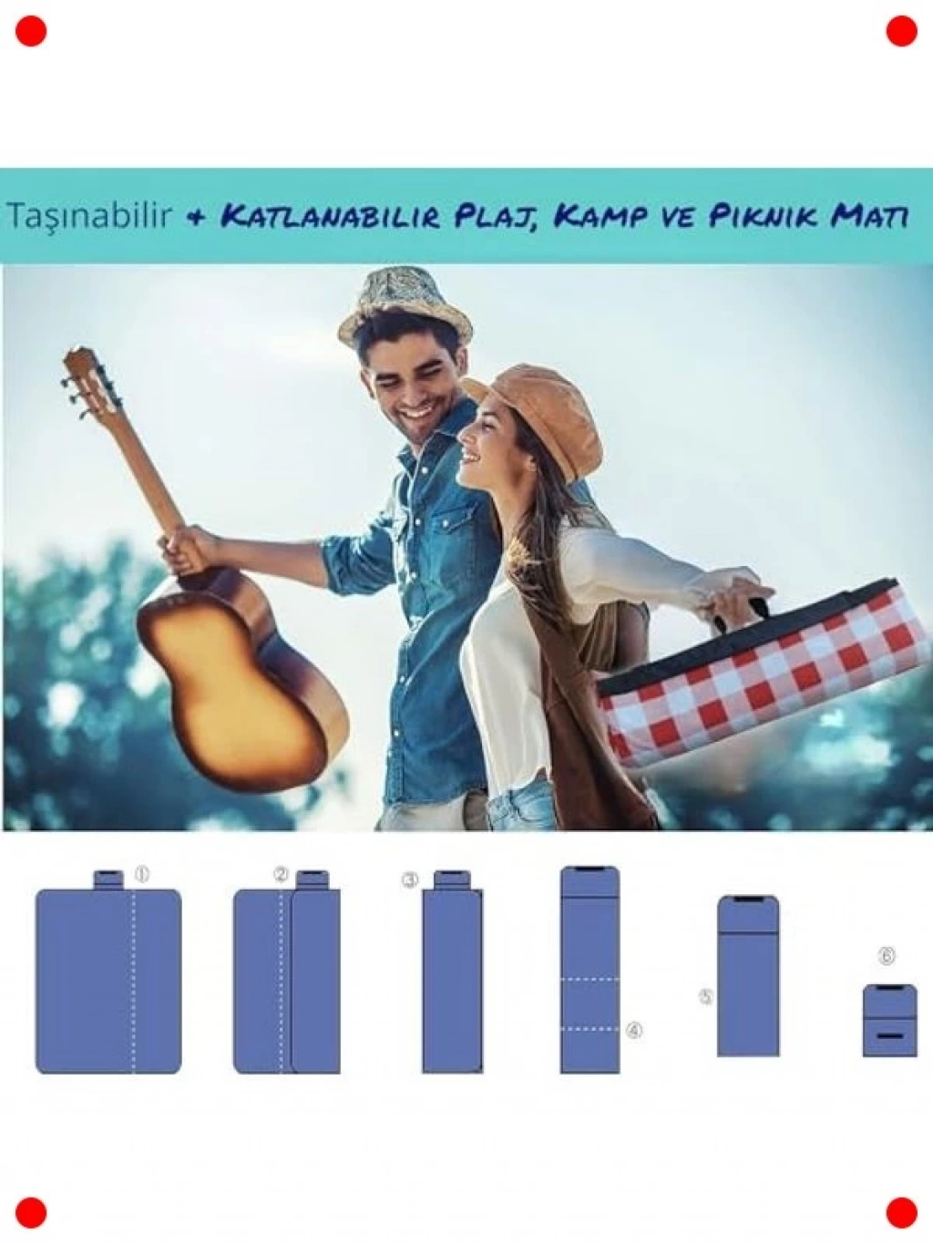 Açık hava etkinlikleriniz için vazgeçilmez bir yardımcı olan bu çok amaçlı örtü, plajda, piknikte veya kampta rahatınız için tasarlandı. Hafif ve katlanabilir yapısı sayesinde kolayca taşınabilir ve özel çantasıyla kompakt bir şekilde saklanabilir. Su geçirmez yüzeyi, nemli zeminlerde bile kuru kalmanızı sağlarken, kum geçirmez özelliği plajda kumların üzerinize yapışmasını engeller. Dayanıklı malzemeden üretilmiştir, yıpranmaya ve yırtılmaya karşı dirençlidir. Geniş boyutlarıyla aileniz veya arkadaşlarınızla rahatça kullanabilirsiniz. Bisiklet turları, sahil gezileri veya kamp maceralarınızda konforlu ve temiz bir alan sunarak keyfinizi artırır.