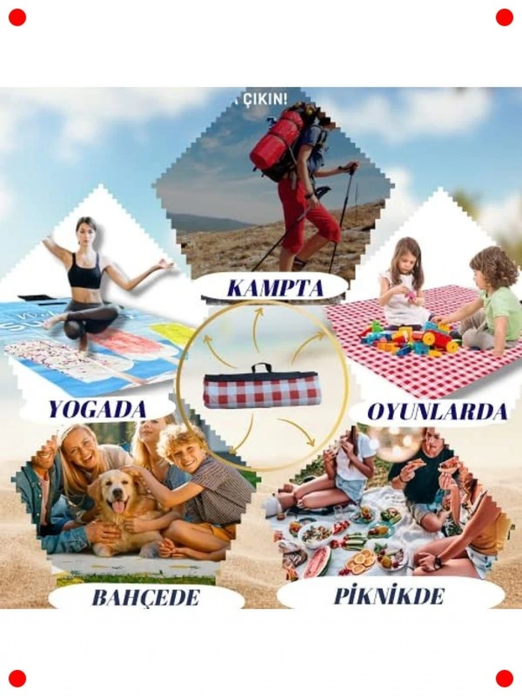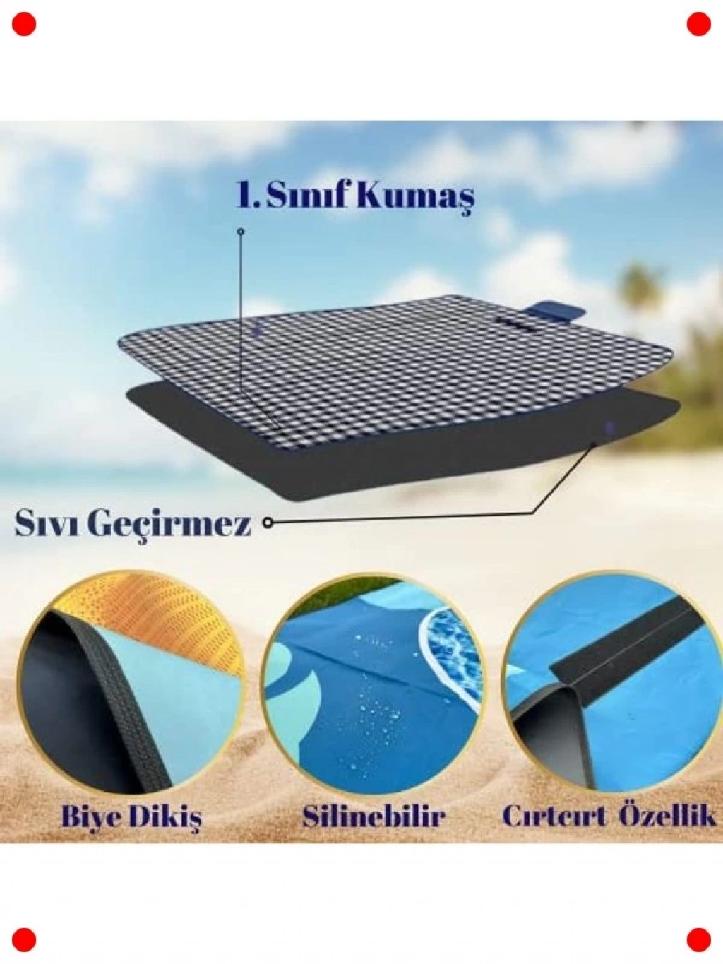 Bu yenilikçi plaj ve kamp örtüsü ile açık hava deneyimlerinizi bir üst seviyeye taşıyın. Su geçirmez ve kum tutmaz özellikleriyle tasarlanmış olup, plajda, piknikte veya kampta maksimum konfor sunar. Hafif ve katlanabilir yapısı sayesinde kolayca taşınabilir ve pratik çantası ile her yere yanınızda götürebilirsiniz. Geniş kullanım alanı sunan bu çok yönlü örtü, dayanıklı malzemesiyle uzun süreli kullanım vaat ederken, sizi nemden ve kumdan koruyarak keyifli anlar yaşamanızı sağlar. Temizliği de oldukça basittir, böylece doğanın tadını çıkarırken endişelenmenize gerek kalmaz.