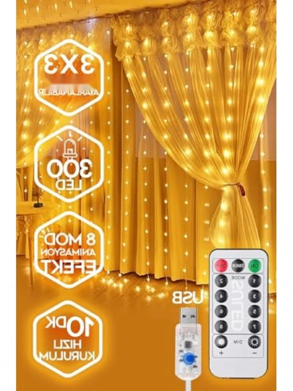 Bu kumandalı LED perde, 3x3 metre ölçülerinde olup animasyonlu ışık efektleri ile evinize büyülü bir atmosfer kazandırır. İç mekanlarda kullanıma uygun olan bu ürün, çeşitli ışık modları ile dekorasyonunuzu zenginleştirir. Kumanda ile kolayca kontrol edilebilir ve ışıklarınızı istediğiniz gibi ayarlayabilirsiniz. Estetik görünümü ile parti, etkinlik veya günlük kullanım için mükemmel bir seçimdir.