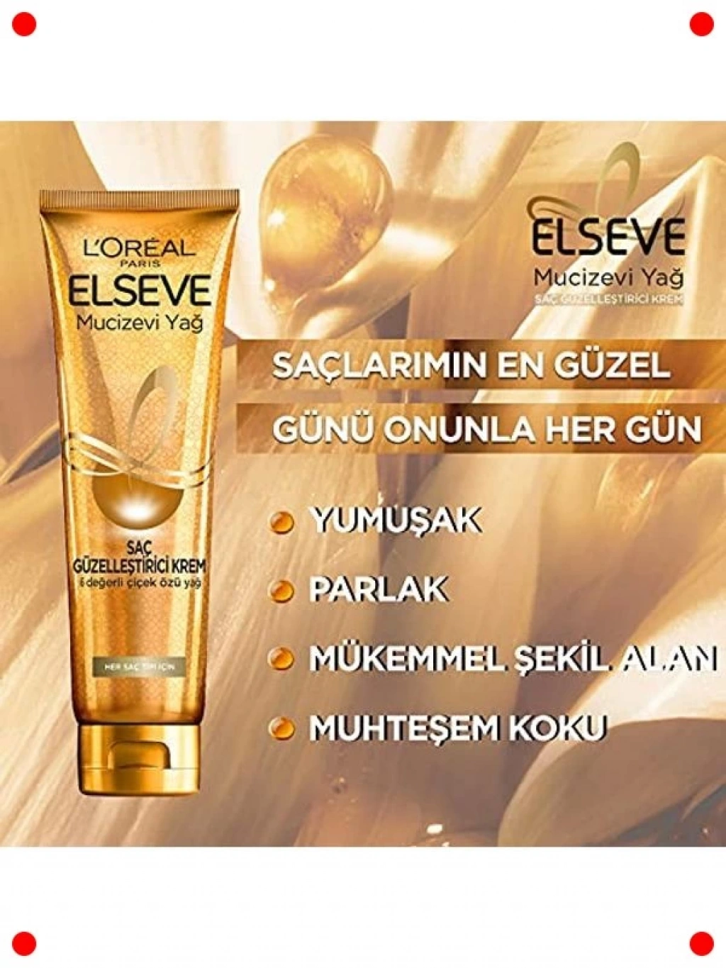 Kuru ve sert saçlar için özel olarak geliştirilmiş bu saç güzelleştirici krem, saçlarınıza yoğun nem ve besin takviyesi sunar. Mucizevi yağ içeriğiyle saç tellerini derinlemesine onararak, kuruluktan kaynaklanan cansız görünümü ortadan kaldırmaya yardımcı olur. Saçlarınıza anında yumuşaklık, parlaklık ve ipeksi bir dokunuş kazandırır. Yıpranmış saç uçlarını onarırken, saçlarınızın kolayca taranmasını sağlar ve elektriklenmeyi kontrol altına alır. 150 ml'lik pratik ambalajıyla kolayca uygulanabilir. Saçlarınızı ağırlaştırmadan doğal hareketliliğini korur. Sağlıklı, pürüzsüz ve ışıl ışıl saçlara kavuşmanız için ideal bir seçimdir.