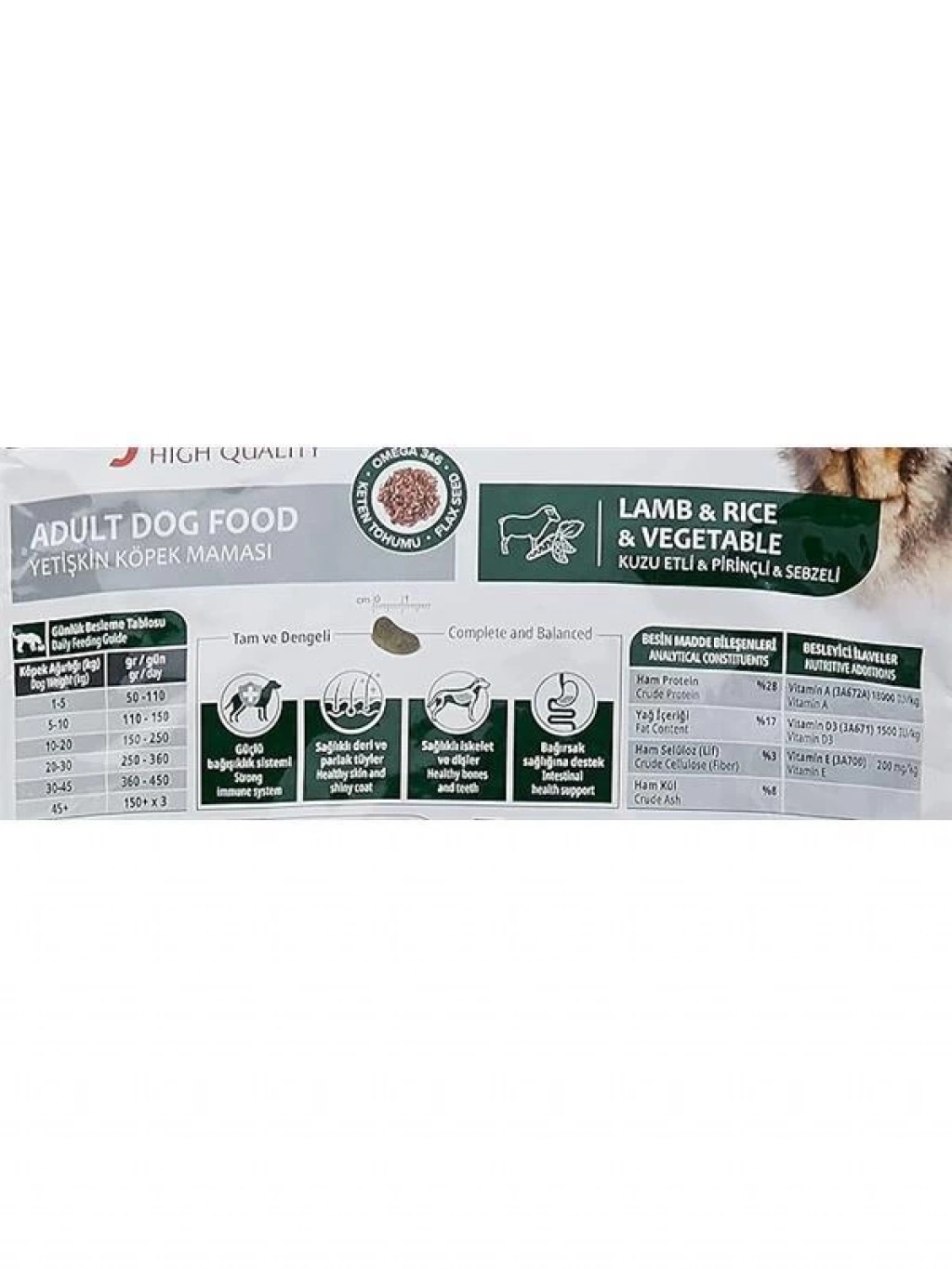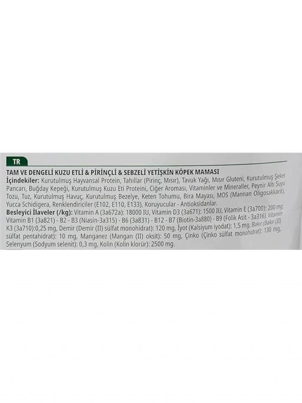 Kuzu Etli Pirinçli Ve Sebzeli Yetişkin Köpek Maması 15 Kg