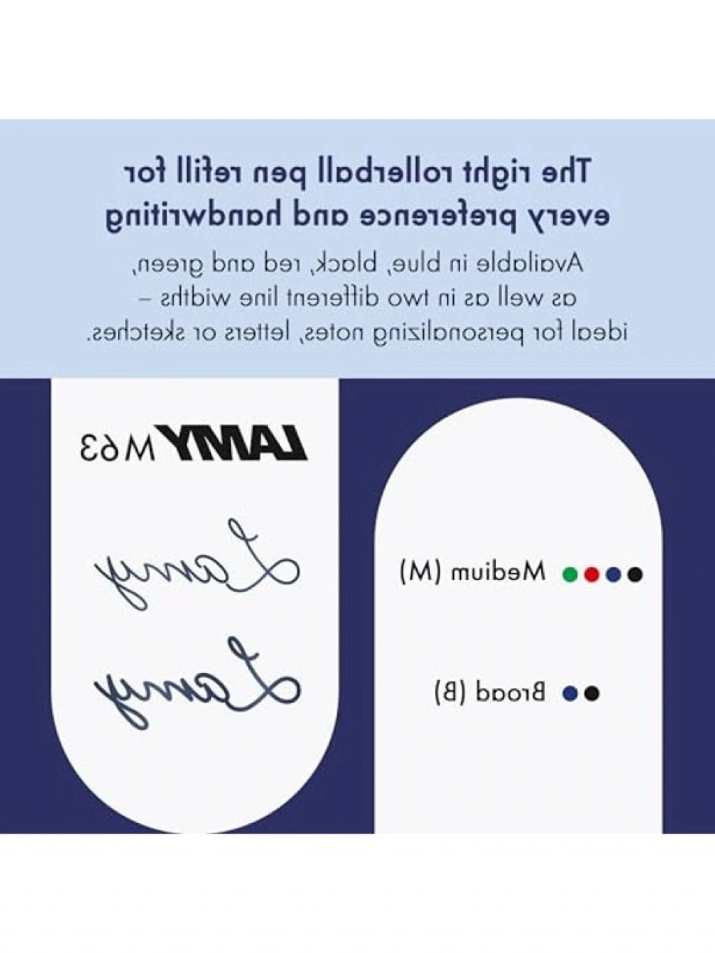 Lamy M63 siyah roller kalem yedeği, 2 parça içeren set ile sunulmaktadır. Yenilikçi tasarımı, geniş çizgi kalınlığı sunarak yazım deneyimini iyileştirmektedir. Avrupanın önde gelen uzmanları tarafından üretilmiştir.