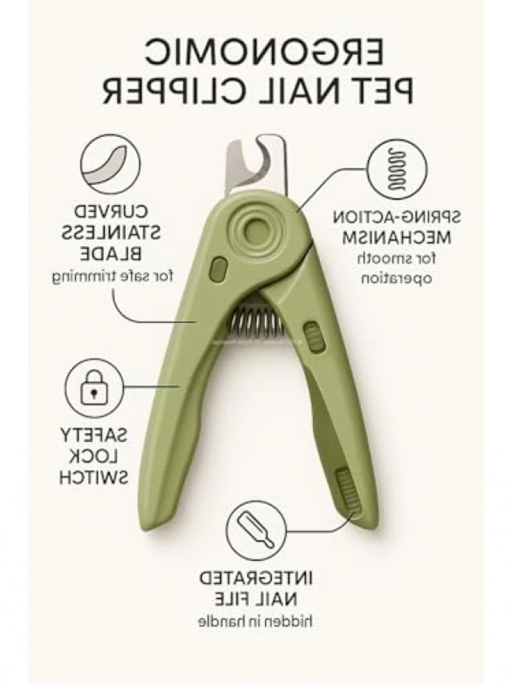 Ergonomik tasarıma sahip LED ışıklı tırnak makası, tırnak damarlarını net bir şekilde görmenizi sağlar. Keskin bıçakları ile tırnakları hızlı ve düzgün bir şekilde keser. Kaymaz sapı sayesinde rahat bir tutuş sunar. Ayrıca, entegre törpüsü ile tırnakları düzgünleştirme imkanı sağlar. Paslanmaz çelik bıçakları ile uzun ömürlü kullanım sunan bu ürün, kedi ve köpekler için uygundur.