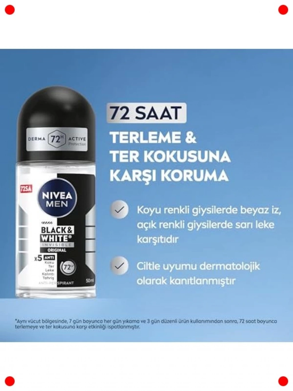 Kıyafetlerinizde iz bırakmadan 72 saate kadar terleme ve ter kokusuna karşı etkili koruma sağlayan bu roll on deodorant ile gün boyu ferah kalın. Özel formülü, beyaz ve sarı leke oluşumunu önleyerek gardırobunuzu korur. Alkol içermeyen yapısıyla cildinize nazik davranır ve tahriş riskini en aza indirir. Hızlı kuruyan ve kompakt yapısıyla çantanızda kolayca taşıyabileceğiniz bu ürün, aktif yaşam tarzınıza mükemmel uyum sağlar. Erkeksi ve ferah kokusu, uzun süreli tazelik hissi vererek her an kendinizi güvende hissetmenizi sağlar.