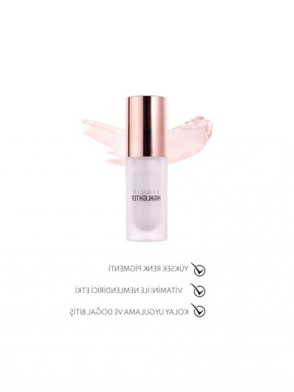 Likit aydınlatıcı, elmacık kemikleri, kaş altı ve dudak üzeri gibi öne çıkan bölgelere uygulandığında cilde anında ışıltı kazandırır. Fondöten ile karıştırılarak tüm yüze doğal bir parlaklık verir. Hafif yapısı, ciltle bütünleşerek pürüzsüz bir bitiş sağlar. Gün boyu kalıcı doğal parlaklık sunan bu aydınlatıcı, makyajınızı tamamlayarak göz alıcı bir görünüm elde etmenize yardımcı olur.
