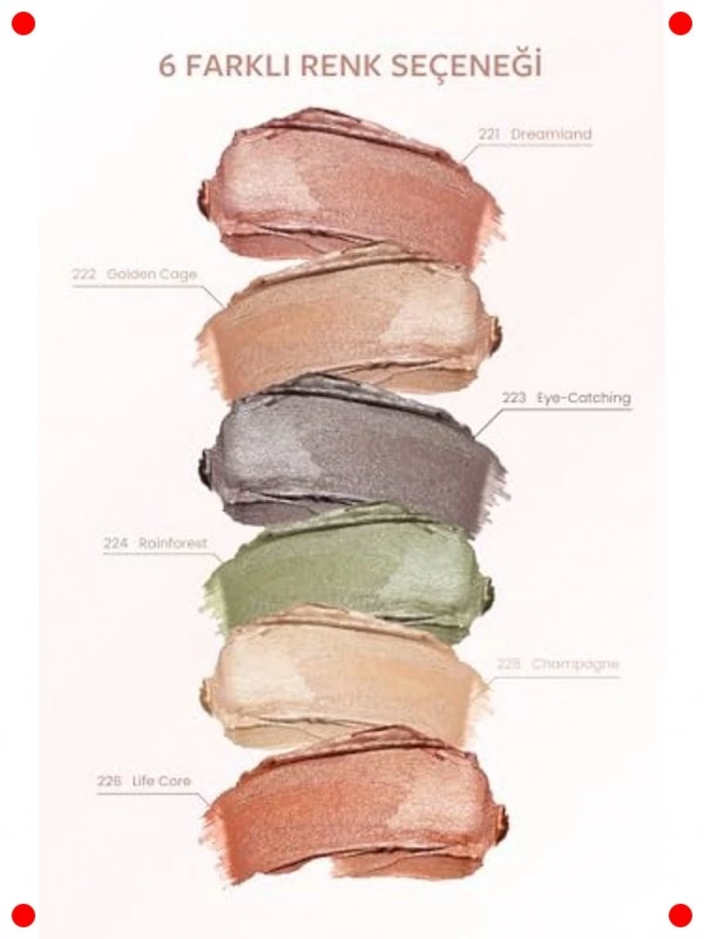 Göz kapaklarınıza anında ışıltı ve canlılık katacak bu likit göz farı ile bakışlarınızı vurgulayın. "225 Champagne" rengi, sıcak ve zarif tonuyla hem gündüz hem de gece makyajınız için mükemmel bir seçimdir. Hafif ve kremsi formülü sayesinde kolayca uygulanır ve saniyeler içinde sabitlenir, gün boyu dağılmaz veya çizgilere dolmaz. Yoğun pigmentasyonu ve parlak bitişiyle gözlerinize derinlik ve çekicilik kazandırır. Tek başına kullanılabileceği gibi, diğer farlarla kombinleyerek daha dramatik etkiler de yaratabilirsiniz. Pratik aplikatörü sayesinde hassas ve hızlı bir uygulama sağlar.