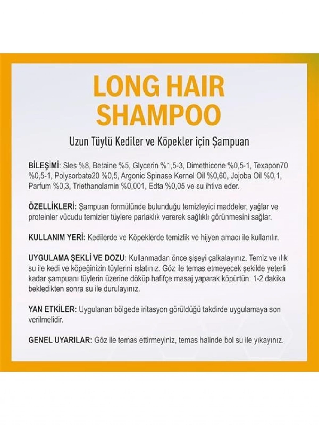 Long Hair Kedi Ve Köpekler İçin Ballı Uzun Tüylü Şampuan 400 Ml