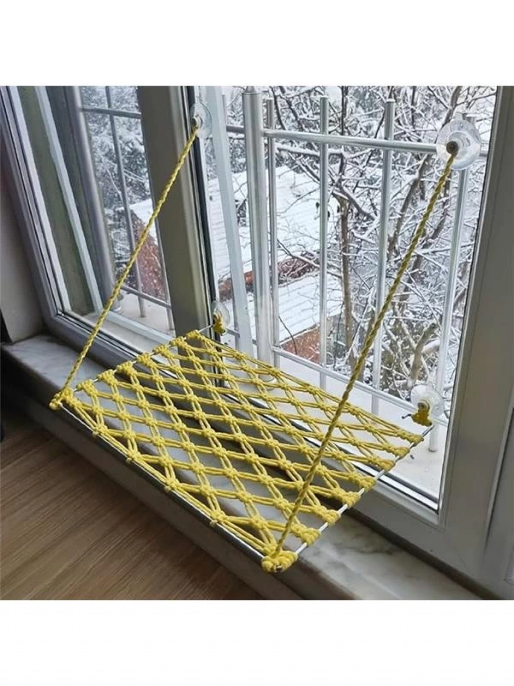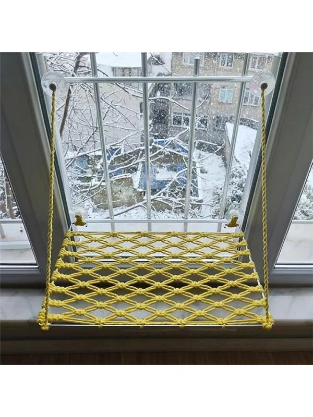 Makrome Vantuzlu Hamak Sade Cam Kedi Yatağı (limon Sarı)