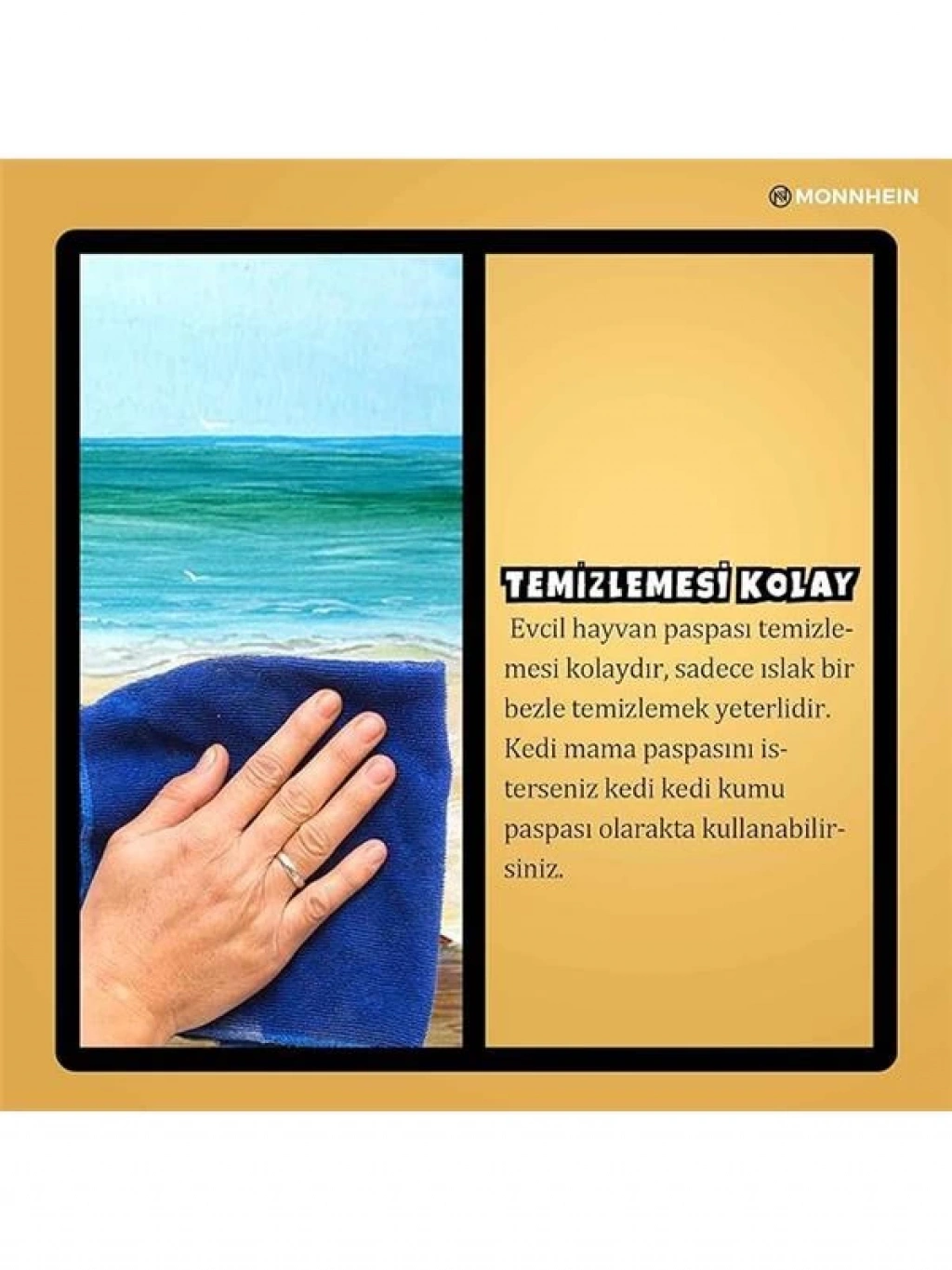 Bu ürün hakkında Temizlemesi Kolay Evcil hayvan paspası temizlemesi kolaydır sadece ıslak bir bezle temizlemek yeterlidir Kedi mama paspasını isterseniz kedi kedi kumu paspası olarakta kullanabilirsiniz Tasarım Evcil hayvan beslenme paspasının güzel tasarımları sizi gülümsetir Evcil hayvan hayvanınıza şık bir beslenme alanı sunar ayrıca evinize dekoratif bir detay da katar bu tasarımlar hem kedi hemde köpekler için mükemmel bir seçim olacaktır Kaymaz Su Geçirmez Kauçuk Taban Kedi ve Köpek Maması altlığı yiyecek ve su dökülmeleri için 100 su geçirmez kaymaz bir tabana sahiptir Ayrıca bu çok yönlü ürünü evcil hayvan kaseleri otomatik evcil hayvan yemlikleri ve beslenme istasyonları içinde kullanabilirsiniz Kedi Köpek Mama Paspasının Boyutları Mama paspasının ebatı tüm evcil hayvanlar için ideal ölçüdedir evcil hayvanınız için geniş bir beslenme alanı sağlarken ev içindeki hareketlerinizi kısıtlamaz Dayanıklı Hafif Malzeme Mama matı yumuşak keçe benzeri bir yüzeye sahiptir dayanıklı ve uzun ömürlüdür paspasın üst yüzeyi dokumasız polyester den oluşmaktadır ve 50nin üzerinde geri dönüştürülmüş elyaftan oluşur