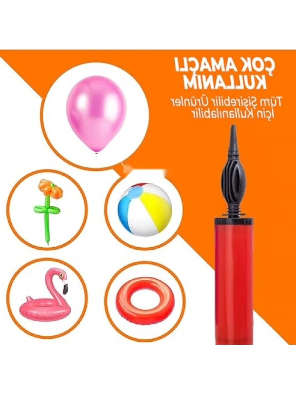Bu profesyonel manuel balon şişirme pompası, renkli ve dayanıklı ABS malzemeden üretilmiştir. Kolay kullanım imkanı sunan eğik nozul tasarımı sayesinde her türlü balonu hızlıca şişirmenizi sağlar. Doğum günü partileri, etkinlikler veya özel günlerde rahatlıkla kullanabileceğiniz bu ürün, uzun ömürlü yapısıyla dikkat çeker. Şişirilebilen tüm ürünler için ideal bir yardımcıdır.