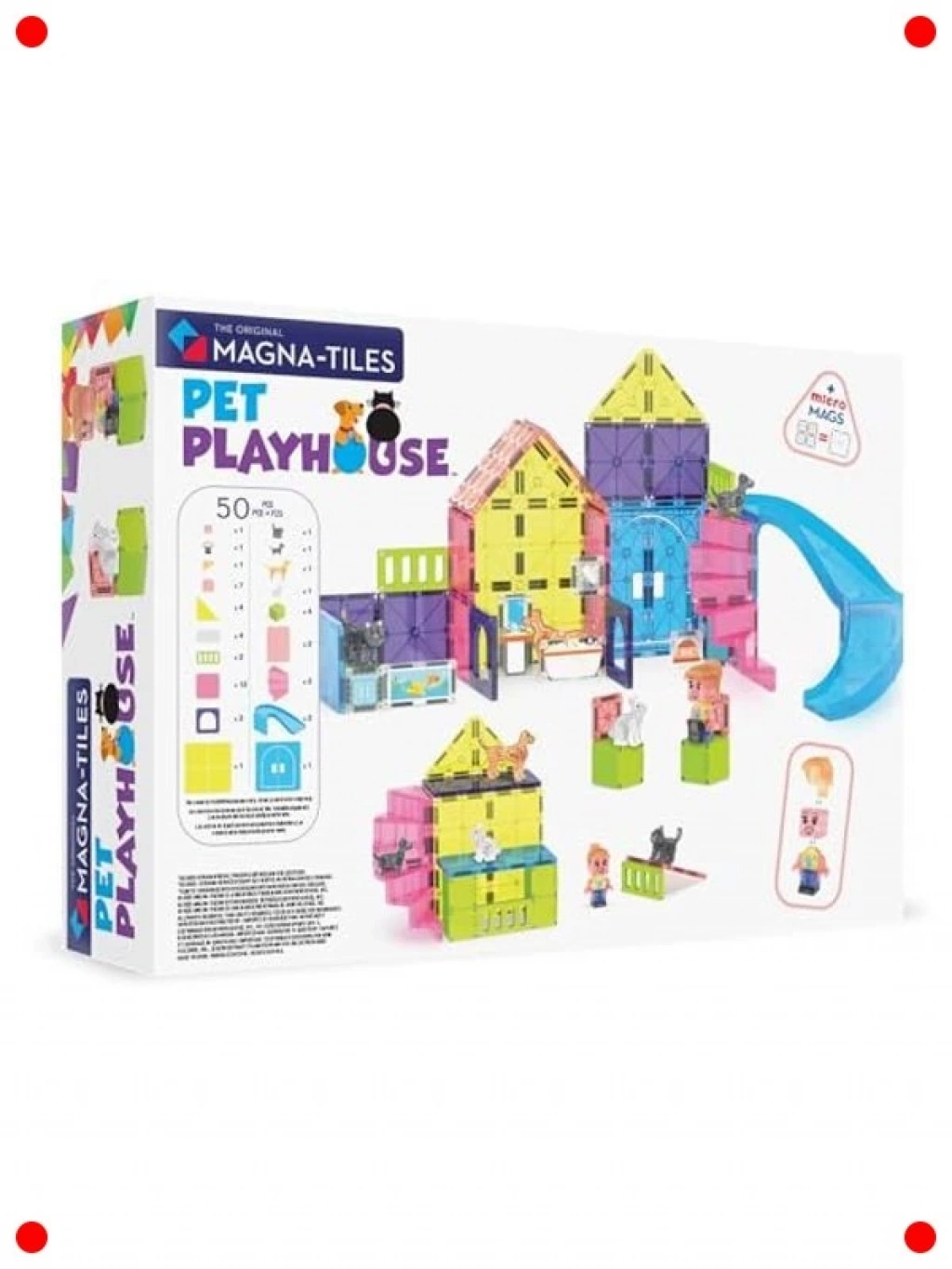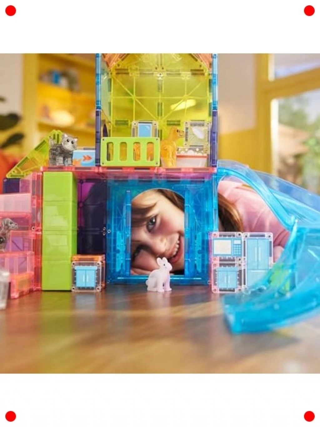 Çocukların hayal gücünü ve mühendislik becerilerini geliştiren bu 50 parçalık manyetik yapı seti ile sınırsız kreasyonlar yaratın! Özellikle evcil hayvan temalı tasarımlar yapmaya odaklanan bu set, renkli manyetik fayanslarla gelir. Çocuklar, bu fayansları kullanarak kendi evcil hayvan evlerini, barınaklarını veya tamamen yeni yapılar inşa edebilirler. Güçlü mıknatıslar parçaların kolayca birleşmesini ve sağlam kalmasını sağlar. STEM becerilerini destekleyen bu set, problem çözme yeteneğini ve yaratıcılığı teşvik ederken saatlerce eğlence sunar.