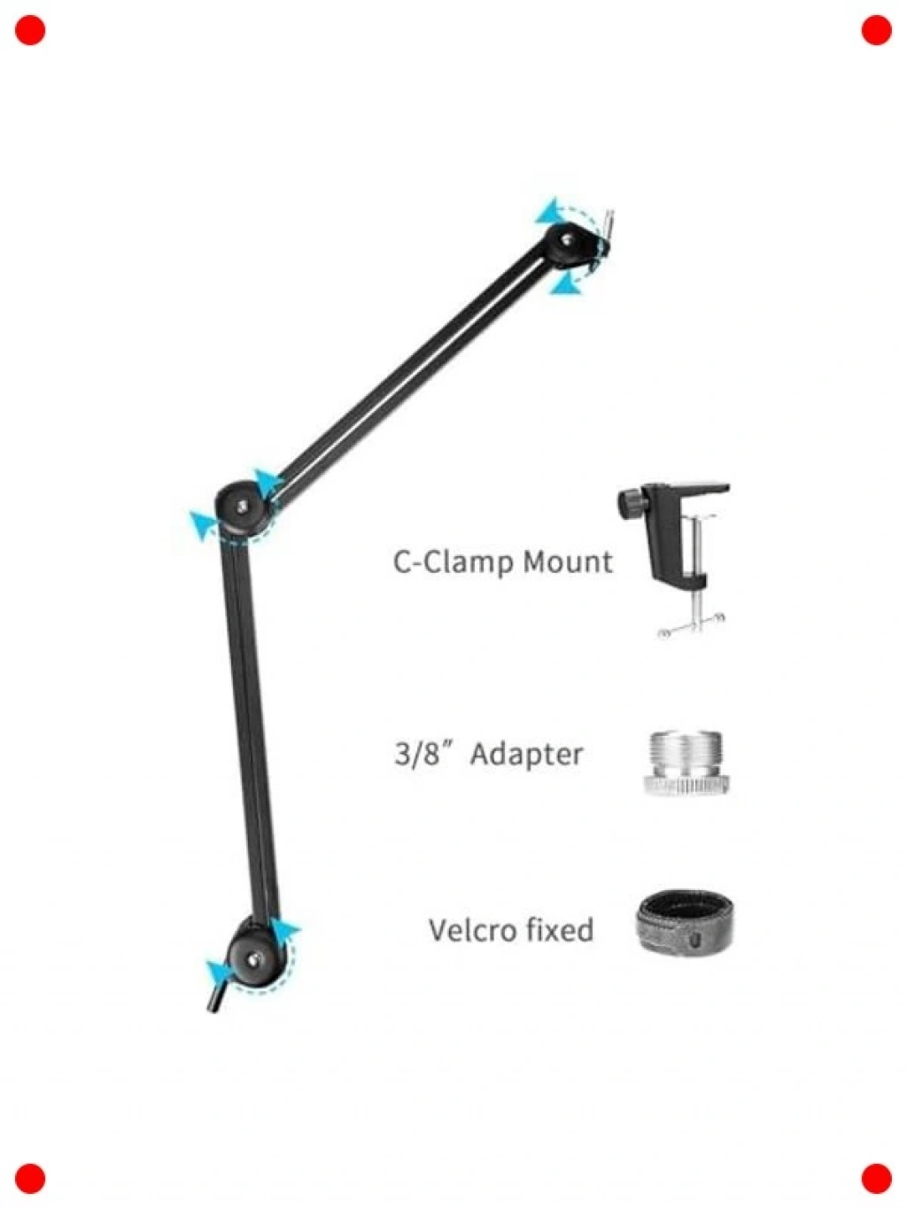 Podcast'ler, yayınlar, seslendirmeler ve ev stüdyosu kayıtları için ideal bir çözüm. Bu masa tipi mikrofon standı, sağlam yapısıyla mikrofonunuzu güvenle sabitler. Ayarlanabilir bom kolu sayesinde mikrofonunuzu istediğiniz açıya ve yüksekliğe kolayca konumlandırabilirsiniz. Masa kelepçesi, standı masanıza sıkıca sabitleyerek yerden tasarruf etmenizi sağlar ve maksimum stabilite sunar. Evrensel uyumluluğu sayesinde çoğu standart mikrofon klipsi ve şok yuvası ile kullanılabilir. Entegre kablo yönetim sistemi, çalışma alanınızı düzenli tutmanıza yardımcı olur. Profesyonel kalitede ses kaydı için vazgeçilmez bir ekipmandır.
