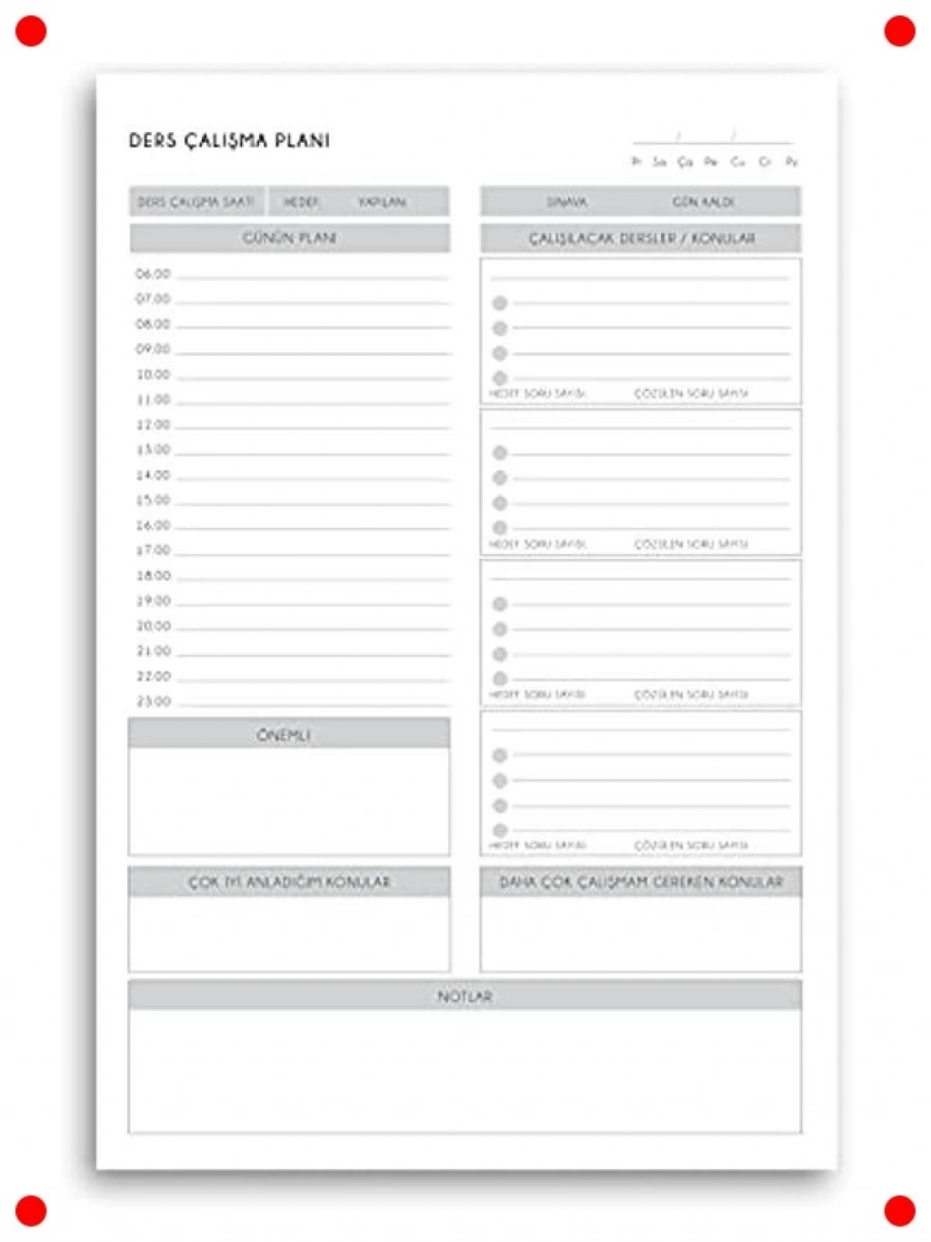 Öğrencilerin akademik başarısını desteklemek amacıyla tasarlanmış bu masaüstü planlayıcı, günlük ve haftalık çalışma düzeninizi kolayca organize etmenizi sağlar. 17x24 cm boyutu ve 60 yapraklık içeriğiyle tüm derslerinizi, ödevlerinizi ve sınav tarihlerini tek bir yerde takip edebilirsiniz. Özel olarak ayrılmış bölümler sayesinde hedefler belirleyebilir, görevlerinizi önceliklendirebilir ve ilerlemenizi görsel olarak takip edebilirsiniz. Odaklanma becerisini artırır, ertelemeyi azaltır ve daha disiplinli bir çalışma alışkanlığı kazanmanıza yardımcı olur. Verimli bir ders çalışma süreci ve düzenli bir yaşam için öğrencilerin vazgeçilmez yardımcısıdır.
