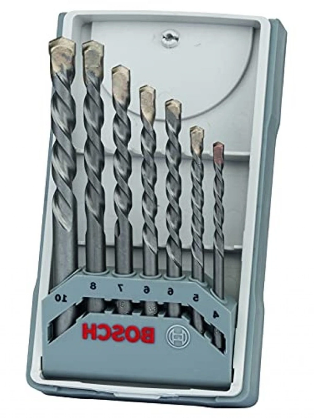 Matkap ucu seti, 7 adet dayanıklı gri renkli matkap ucu içerir. Beton ve doğal taşlar gibi malzemelerde delme işlemlerinde kalıcı performans sunar. Gelişmiş karbür alaşımı sayesinde yüksek aşınma direnci sağlar.