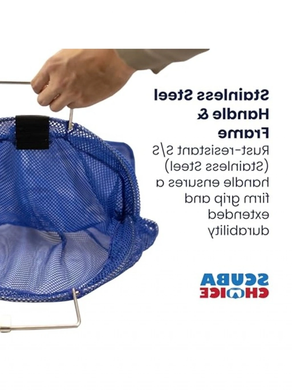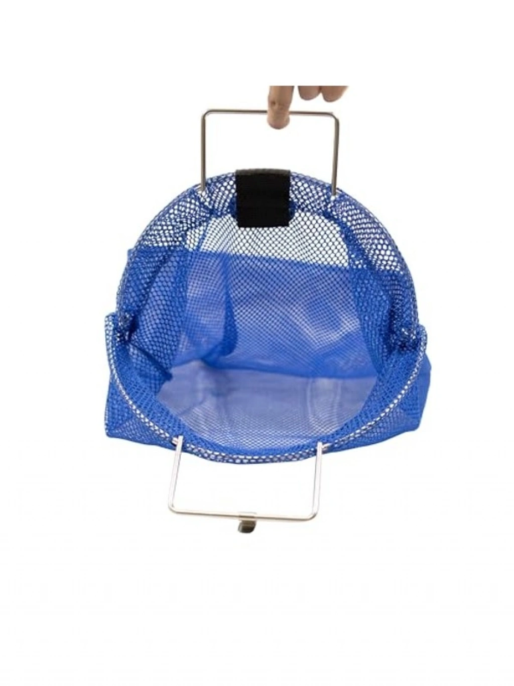 Mavi balık çantası, açıldığında 30,4 cm genişliğinde bir çap sunar. 5 mm paslanmaz çelik tel sapı ile sağlam bir tutuş sağlar. 60,9 cm x 43,1 cm ölçülerindeki bu çanta, sapa takılı file kapama klipsi ile güvenli bir saklama imkanı sunar.
