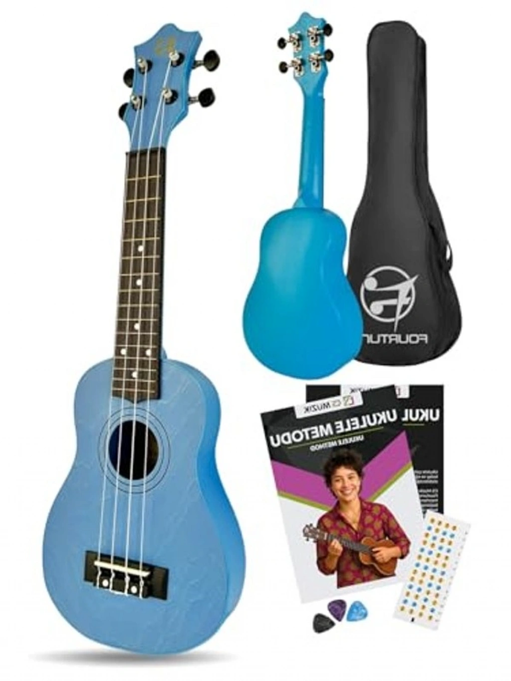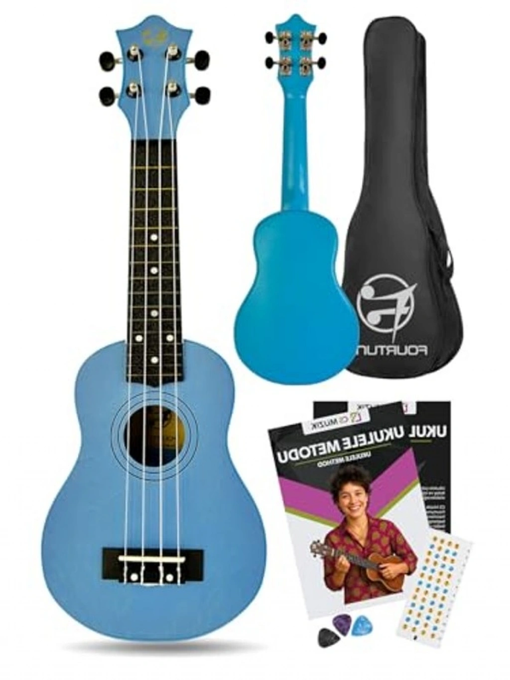 Mavi ukulele seti, başlangıç seviyesindeki kullanıcılara hitap eden 21 inç soprano boyutundadır. Ahşap görünümlü dayanıklı malzemeden üretilmiş olup, taşınabilir kılıfıyla birlikte gelir. Kullanım kılavuzu ve notalarla donatılmış bu set, müzik öğrenimini kolaylaştırır.