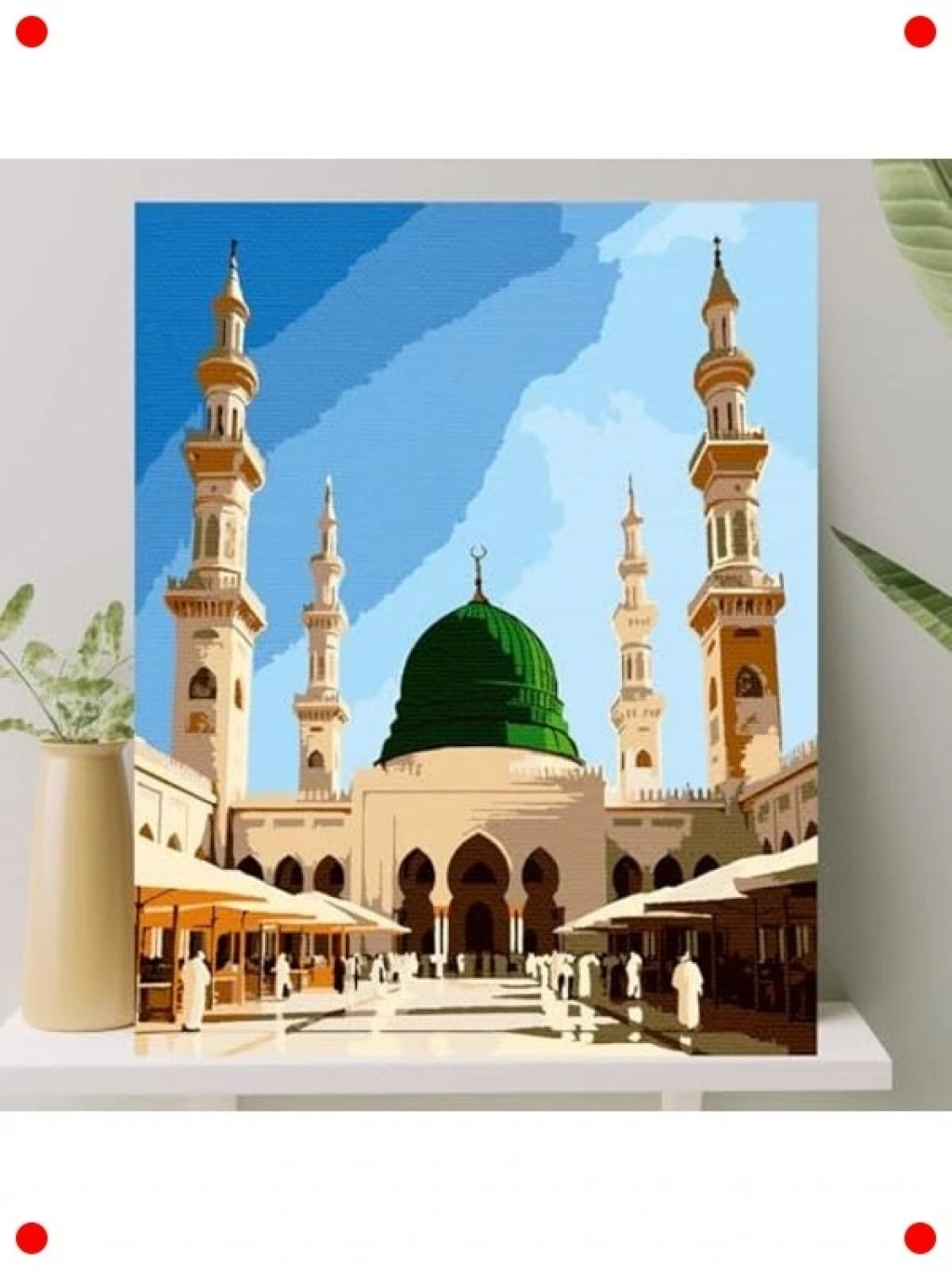 Manevi bir yolculuğa çıkar sanatsal yeteneklerinizi keşfedin! Bu sılarla ma seti, Mescid-i Nebevi'nin huzur veren ve ihtişamlı görüntüsünü tuvalinize taşımanızı sağlar. Numaralandırılmış alanları doğru renklerle doldurarak, adım adım di kutsal sanat eserinizi yaratacaksınız. Set içerisinde kaliteli fırçalar, özel olarak hazırlanmış lar ve çıta rili 40x50 cm tuval bulunmaktadır. Meditasyon etkisi yaratan bu aktivite, zihninizi sakinleştirir nı zamanda estetik bir ürün orta çıkarmanızı sağlar. İslam sanatı ve mimarisine ilgi duyanlar için hem rahatlatıcı bir hobi hem de anlamlı bir hee seçeneğidir.