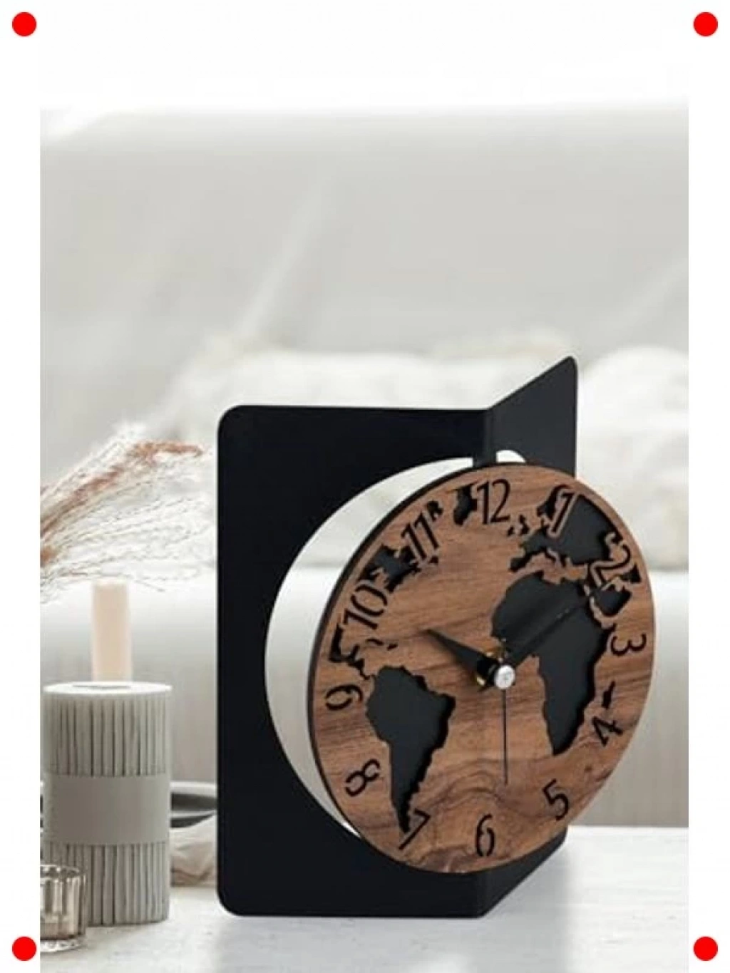 Ev veya ofis dekorasyonunuza modern ve endüstriyel bir hava katacak, metal ve ahşabın uyumlu birlikteliğiyle tasarlanmış bu dekoratif masa saati. 19x15 cm boyutlarıyla masanızda, raflarınızda veya şömine üzerinde göz alıcı bir parça oluşturur. Kaliteli metal ve doğal ahşap malzemelerin birleşimi, ürüne hem dayanıklılık hem de estetik bir değer katar. Sessiz mekanizması sayesinde çalışma veya dinlenme alanlarınızda rahatsız edici tik tak sesleri olmadan zamanı takip etmenizi sağlar. Ev hediyesi veya özel günler için mükemmel bir seçenektir.