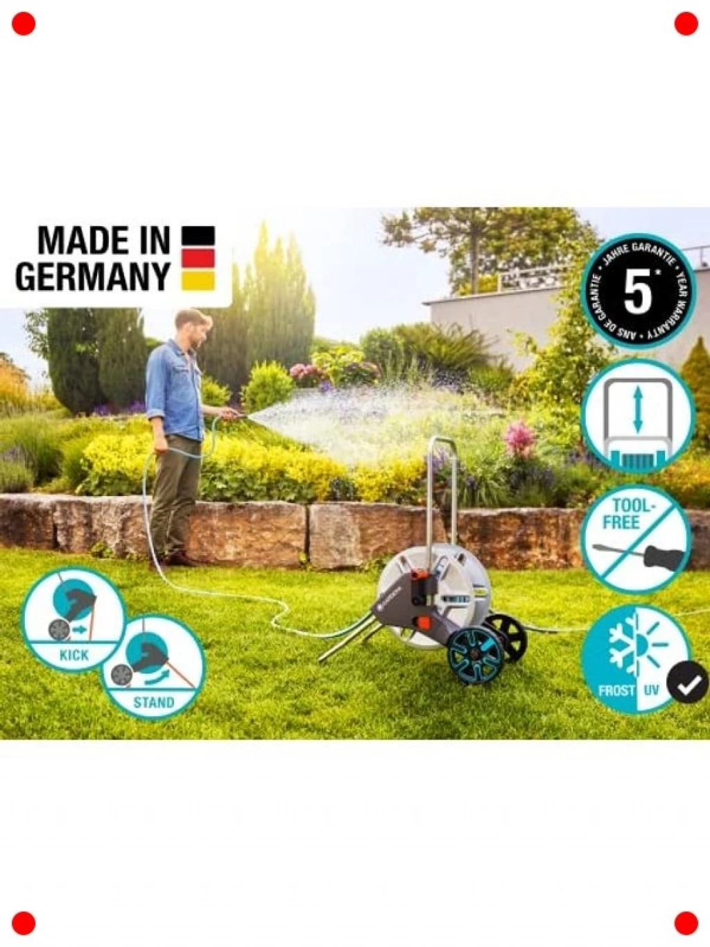 Bahçe hortumunuzu kolayca taşımak ve düzenli bir şekilde saklamak için tasarlanmış bu orta boy metal hortum arabası, bahçe işlerinizi çok daha pratik hale getirir. Sağlam metal yapısı sayesinde uzun ömürlü ve dayanıklıdır. Özel tambur mekanizması hortumunuzun kırılmadan ve dolanmadan sarılmasını sağlar. Ergonomik taşıma kolu ve tekerlekleri sayesinde bahçenin her köşesine rahatlıkla götürülebilir. 50 metreye kadar hortum kapasitesiyle orta büyüklükteki bahçeler için idealdir. Bahçenizin düzenini korurken sulama işlemlerini zahmetsizleştirir.