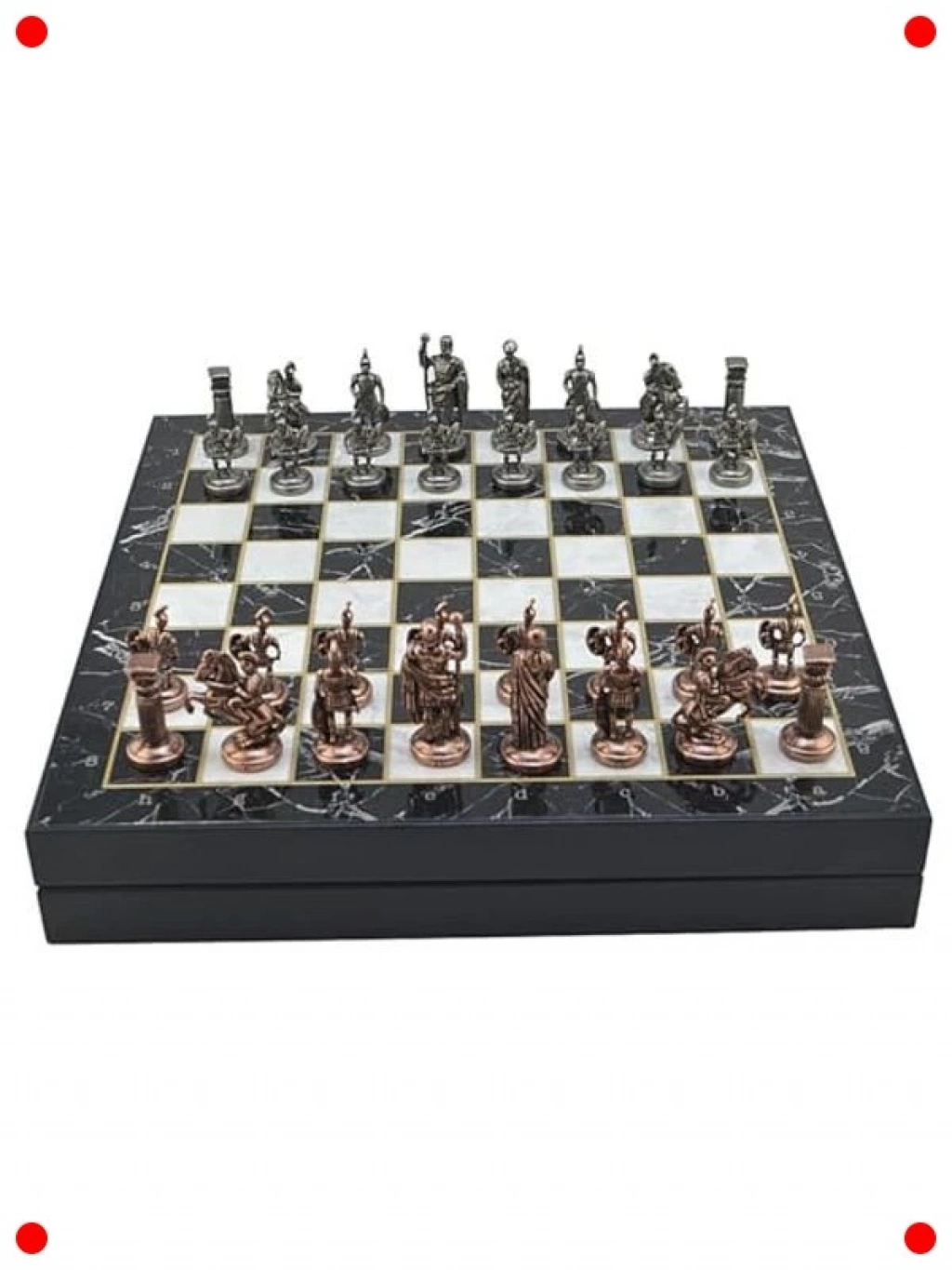 Stratejinin ve estetiğin mükemmel birleşimi olan bu orta boy metal Roma satranç takımı ile oyun deneyiminizi bir üst seviyeye taşıyın. Detaylı işlenmiş antik Roma temalı metal figürler, her hamlede tarihin ruhunu hissettirir. Mermer desenli MDF tahtası (36x36x6 cm), hem sağlam hem de görsel olarak oldukça çekicidir, her türlü dekora uyum sağlar. Aynı zamanda pratik bir saklama sandığı görevi görerek tüm taşlarınızı düzenli ve güvende tutar. Bu takım, satranç severler için keyifli bir oyun aracı olmanın yanı sıra, eviniz veya ofisiniz için çarpıcı bir dekoratif obje niteliğindedir. Sevdiklerinize hediye edebileceğiniz kalıcı ve prestijli bir seçenektir.
