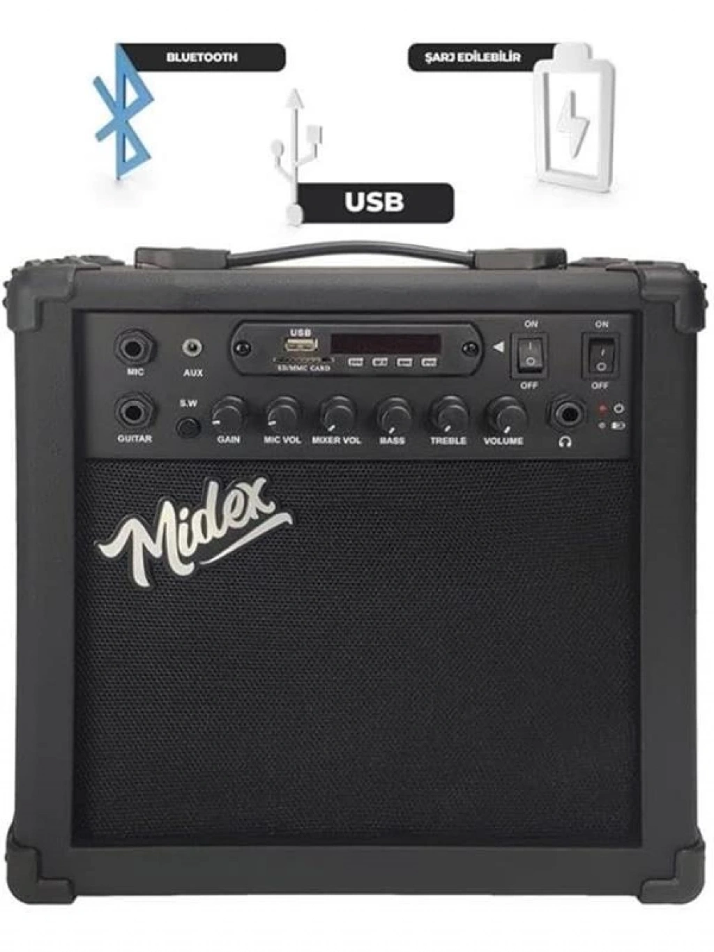 MGA-25BKBT-HD ŞARJLI Elektro Gitar Amfisi 25 Watt USB Bluetooth Distortion Kulaklık ve Kablo